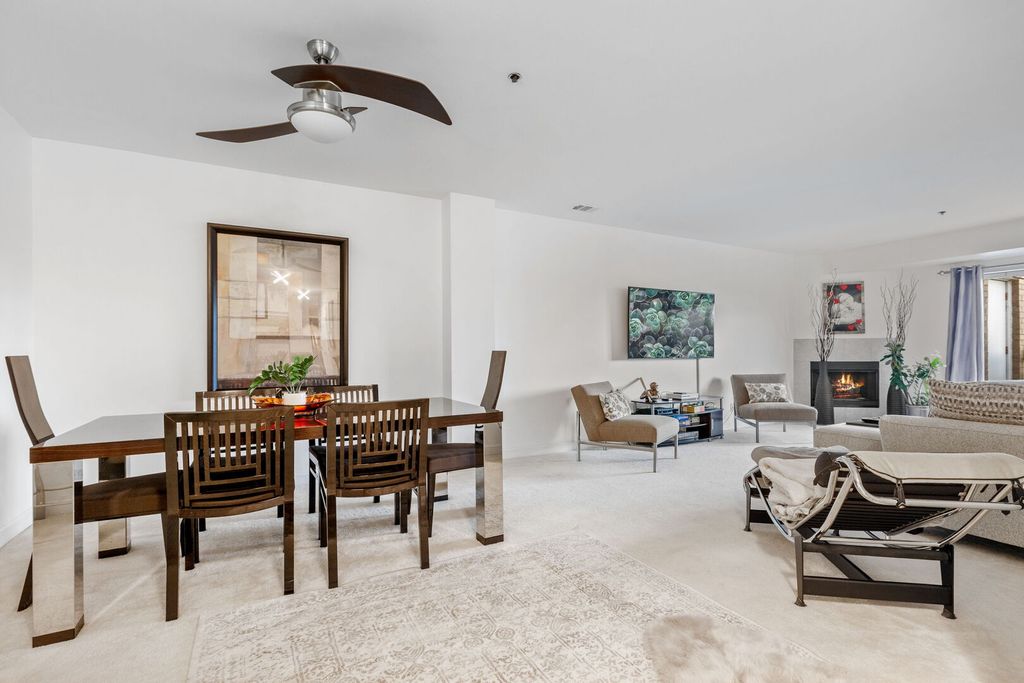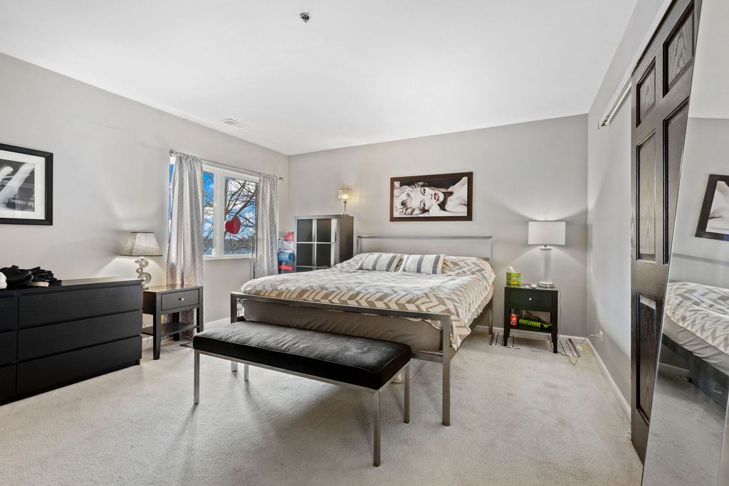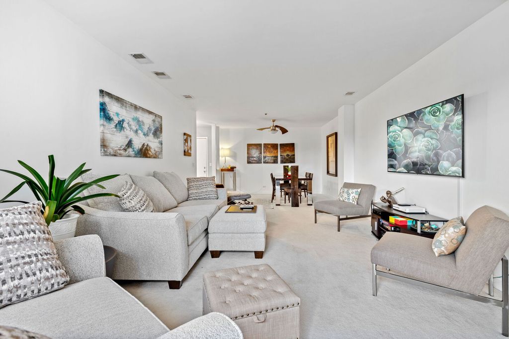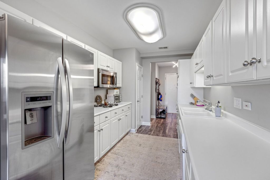 Top floor with panoramic views. Wall of windows allow natural light to pour in. Large balcony is perfect for relaxing with your favorite beverage. Barbecuing is allowed at Manchester Green on the private balcony. Large 2-bedroom and 2 baths with family room, fireplace, eat in kitchen and a dining room combined with living room. Length is over 20ft making it possible to have memory making meals with friends and family. Don't give up entertaining just because you live in a condo, this one is spacious with a kitchen that has double built in ovens, and a gas cook top too. Plenty of upper and lower cabinets offer loads of storage and the counter space makes food prep a breeze. Recessed lighting, walk in closets, laundry room with washer and dryer, linen closet in hallway, the list is long. Stop by and take a look, located walking distance to Deerfields Bakery, the Post office, so many restaurants and grocery stores. Across the street from the park and minutes by car to schools, library, ice rink and metra train station. Located in the Award-Winning Stevenson School District and Buffalo Grove Park District. Parking spot is #37 and storage locker is on the second floor in the Electrical Room. adjacent to the elevator. Special assessment will be paid off at closing. The roof was done in 2025 and the elevator is being done in 2026. Manchester Green has a lovely party room, with a kitchenette, powder room, closet and small library. Hosting a party or play cards, book club, crafts the list is endless.