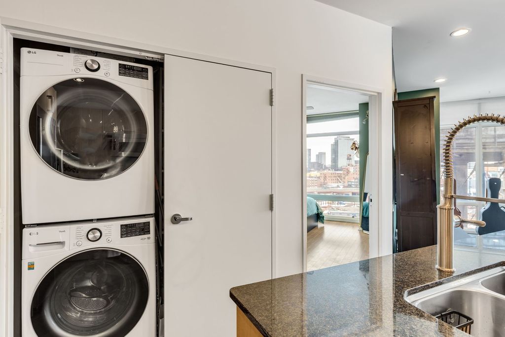 Designed by renowned Chicago architect Lucien Lagrange, this beautiful corner 2-bedroom, 2-bath residence offers sweeping city views to the South and the Chicago River to the West. Move-in ready and thoughtfully designed, the home features an open-concept layout with floor-to-ceiling windows that flood the interiors with natural light. The spacious living and dining areas showcase sleek slate flooring and direct balcony access, creating the perfect setting for everyday living and entertaining. The modern kitchen is outfitted with neutral Bulthaup cabinetry, granite countertops, and stainless-steel appliances, while a versatile utility closet doubles as a pantry. The serene primary suite features a professionally organized walk-in closet and a spa-like en-suite bath with dual vanities, a deep soaking tub, separate shower, and additional storage. The generously sized second bedroom easily fits a queen bed and workspace, ideal for a guest room or home office. Additional highlights include organized closets throughout, roller sunshades, and in-unit laundry. Residents enjoy a well-maintained, full-amenity building with 24-hour door staff, fitness center, bike storage, and more. Ideally situated just east of the river, directly across from Ward Riverfront Park and steps from the Larrabee Dog Park, Riverwalk, Peet's Coffee, Erie Cafe, and an abundance of shopping and dining options. One prime in-door garage parking space is an additional $25,000.