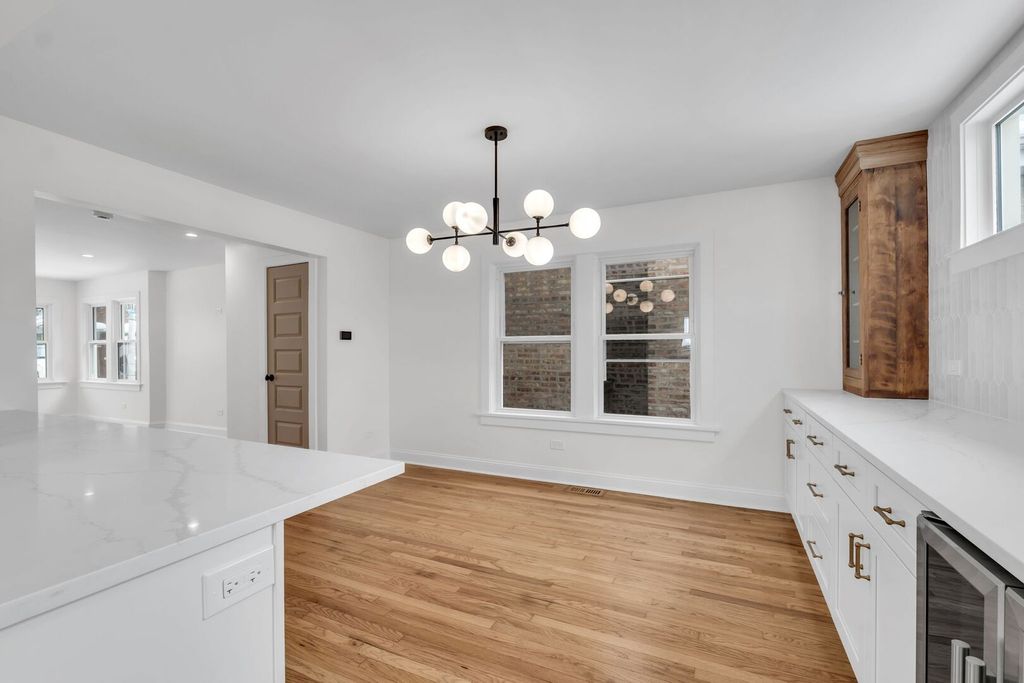 Every detail of this beautifully reimagined single-family home has been thoughtfully curated to blend timeless character with modern luxury. Fully renovated from top to bottom-including all new plumbing, electrical, and the addition of central heating and air-this home offers worry-free living and exquisite design throughout. Step inside to a charming entryway that opens to a grand, light-filled living room and a spacious formal dining area, both enhanced by custom built-in cabinetry for effortless style and storage. The open-concept kitchen is a true showpiece, featuring high-end appliances, custom cabinetry, and elegant finishes that make it the heart of the home. An additional main-level room offers versatility for a home office, playroom, or cozy den, and a brand-new powder room adds convenience for guests. Upstairs, you'll find three serene bedrooms and a beautifully appointed full bathroom with designer touches. The fully finished basement provides another level of flexible living space-perfect for a family room, gym, or guest suite-along with a full laundry room. Enjoy outdoor living in the private backyard, complete with a wooden deck and a two-car garage. Located within highly rated Oak Park schools and offering easy access to the highway and public transit, this home combines the best of comfort, design, and location.