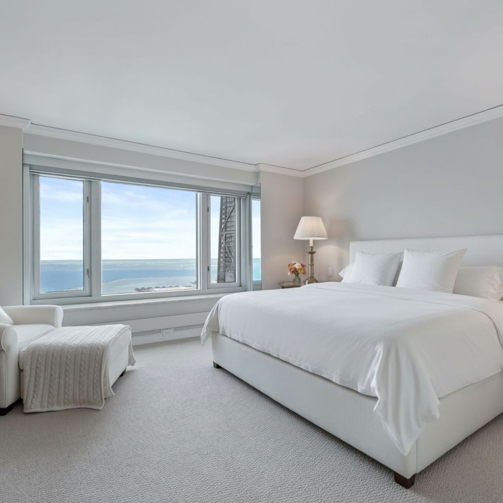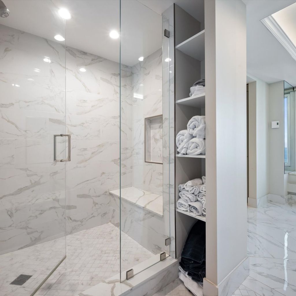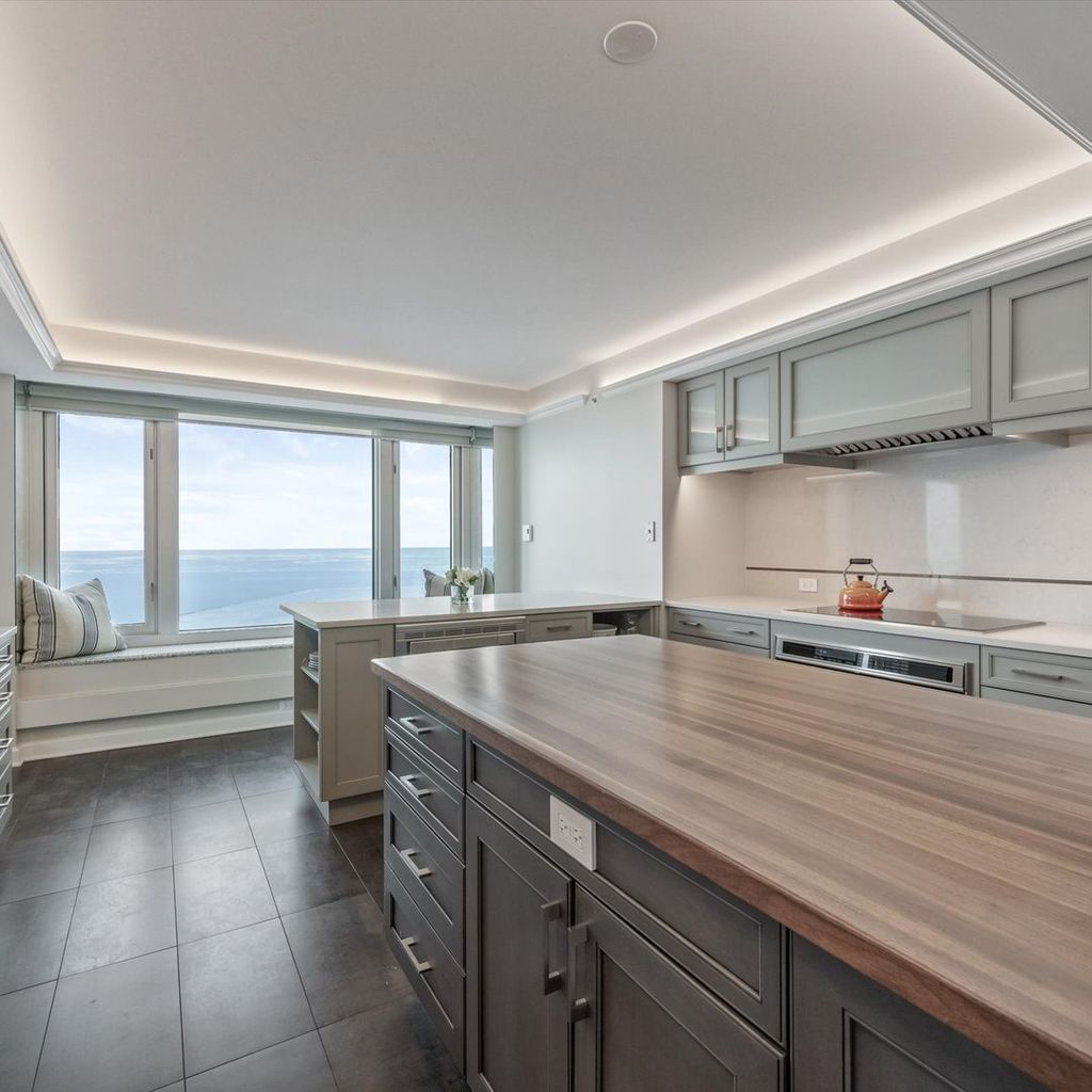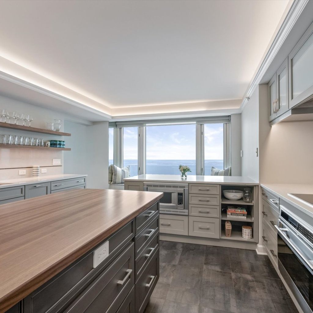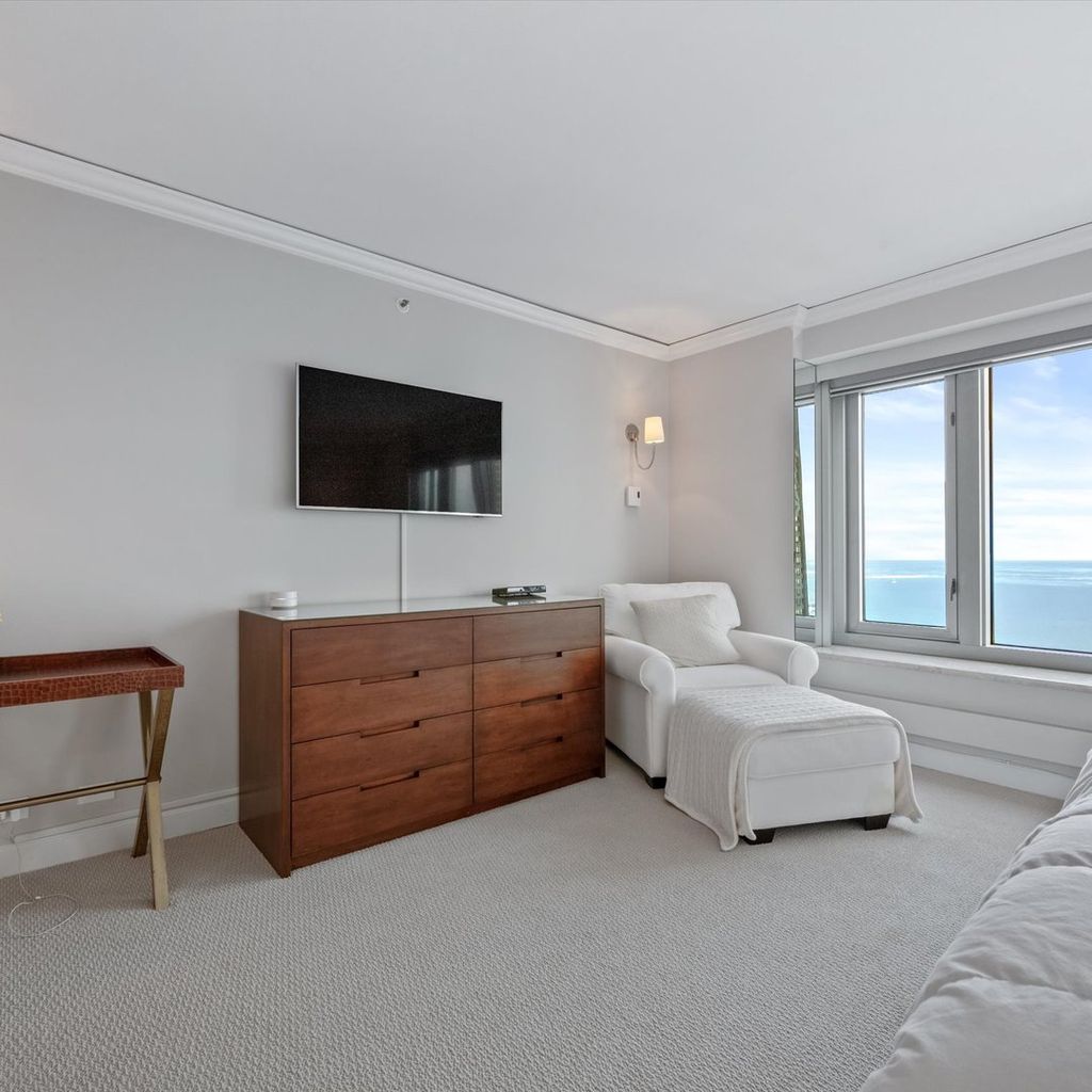 Move right into this stunning home. Perched on the 51st floor above the Four Seasons Hotel in Chicago's iconic Gold Coast, this expansive 3 bed, 3 bath corner residence offers drop-dead gorgeous panoramic north and east views of Lake Michigan and the city skyline. Renovated recently with a modern/transitional/timeless/streamlined aesthetic, the home features an open-concept living and dining area, with a spacious home office or third bedroom, and wide-plank oak flooring. The chef's kitchen is outfitted with Sub-Zero and Wolf appliances, porcelain tile floors, a striking walnut island, custom two-tone cabinetry, and open shelving for display. The primary suite is a large, serene retreat. The extraordinary primary bath is spa-like, with views overlooking the lake, marble tile, a walk-in shower, and a large dressing room/walk-in closet. The second bedroom includes its own full bath. The home has an in-unit laundry room with great storage, and a beautiful built-in dry bar as well. Enjoy full-service living above the Four Seasons Hotel Chicago, with optional access to hotel amenities including room service and spa offerings-all just steps from world-renowned shopping and dining on Michigan Avenue. Don't miss this rare opportunity for turnkey luxury in one of Chicago's most prestigious addresses. Monthly valet parking available, reserved parking is offered but currently has a waitlist. Cats and Dogs okay, no weight limit. A 48-hour notice will be required to show. Exclusions: Zebra mirror in the foyer and the large mirror in the master bedroom.