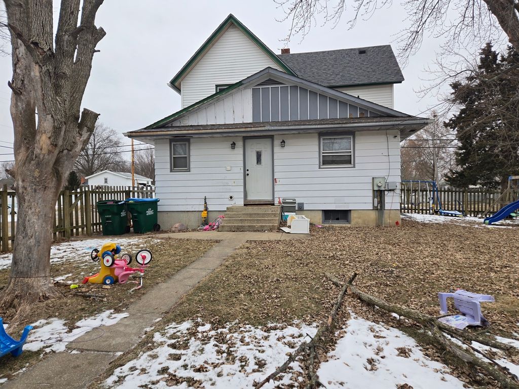 Nice corner location close to schools and park. Main floor bedroom, full bath and laundry. All appliances included. Main sewer line has been replaced. Updated furnace, water heater and electrical service. Alley access to the 3 car garage and a 2 car overhead door with opener. Two bedrooms and full bath on 2nd level. Fenced backyard.