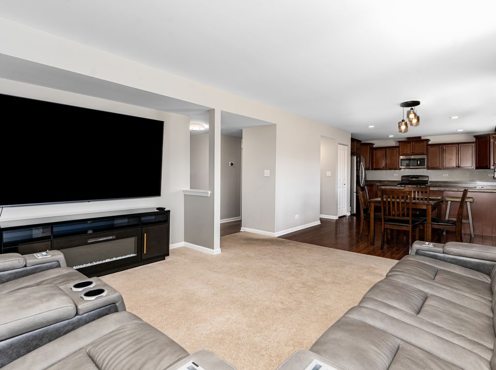 Welcome to this beautifully maintained 4-bedroom, 2.5-bath duplex located in the highly desirable Cambridge Lakes pool community. Backing to open space with a fenced yard and newer patio, this home offers privacy along with plenty of room to relax or entertain. The main level features a kitchen with rich dark wood cabinetry, a peninsula island, and an eating area with direct access to the patio. The oversized family room provides an inviting space for everyday living and gatherings, while the main-floor laundry adds convenience. Upstairs you'll find four spacious bedrooms, including an oversized primary suite with a walk-in closet and private bath. Residents enjoy outstanding amenities within this active community, including two pools, clubhouse, fitness center, indoor gymnasium, aerobic studio, and miles of walking trails. The neighborhood also features a charter school serving Pre-K through 8th grade. Plus easy access to Route 47, Route 20, I-90, shopping, dining, and more.