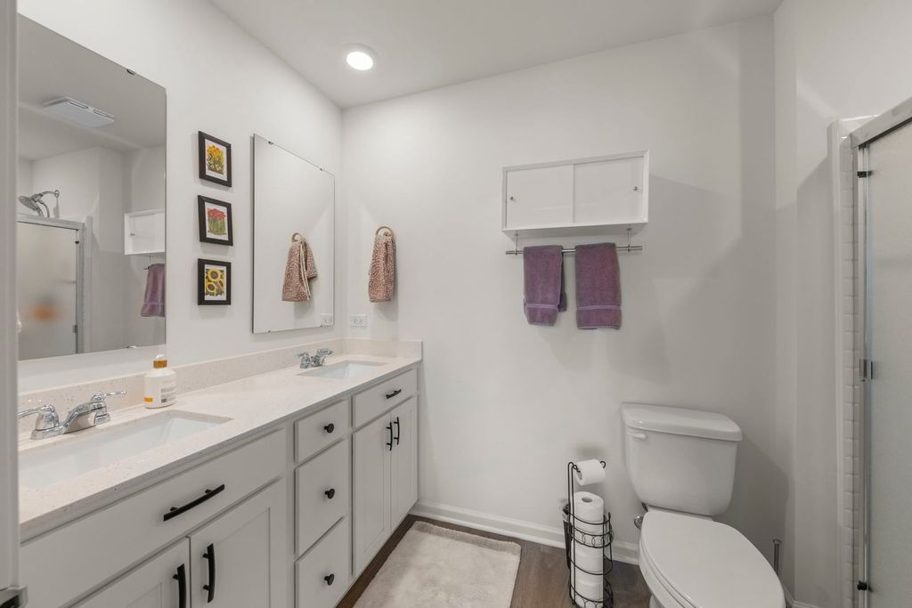Welcome to 352 Bridgeview Ct., a new townhome only lived in for a few months in the desirable Charlestowne Lakes community of St. Charles, IL. Offering over 1,800 square feet of thoughtfully designed living space, featuring 3 bedrooms, 2.5 bathrooms, and a finished flex room. The flex room is ideal for a home office, den, or playroom. Upstairs, the open-concept main living area is perfect for both everyday living and entertaining. The spacious kitchen overlooks the dining and great room areas and features white designer cabinetry, a large island with quartz countertops, and a pantry. The upper level includes a generous primary suite with a walk-in closet and private en suite bath, along with two additional bedrooms, and a laundry room. Luxury vinyl plank flooring is featured throughout the main living areas, kitchen, bathrooms, and laundry room. Over $15,000 in additions including motorized blinds, refrigerator, washer, dryer, water softener, water filtration, and more. Additional highlights include an energy-efficient ERV furnace system and a tankless water heater. Charlestowne Lakes is an upscale townhome community conveniently located off Route 64, close to everyday amenities and just minutes from vibrant downtown St. Charles.