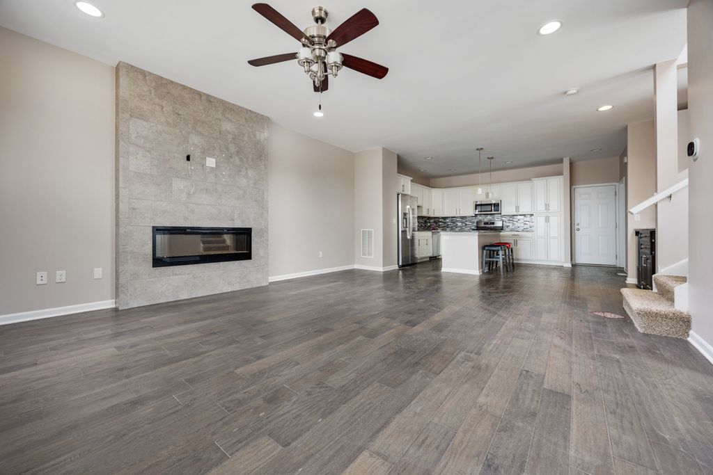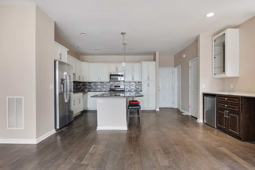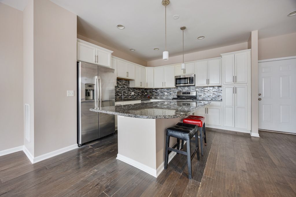 PRIME LOCATION - END UNIT - NORTH FACING CORNER UNIT - With incredible views and gorgeous sunlight throughout the day/year! Brand New Paint! NThe Hartford model is the larger model offered in Union Square by the builder. Enjoy beautiful courtyard landscaping and open area from your double balconies - one from the Owner's suite, the other just off the front door! Modern and open floor plan features a luxury design, a massive kitchen with tons of cabinetry and a designer Signature island - with seating for four. Hardwood floors on the main level. Extra cabinets and pantry cabinets. Glass tile backsplash and extended island space as well. 2nd floor has 3 bedrooms with great closet space. The Owner's suite features a door to the balcony, barn door to owner's bath, and double vanity. One of the largest walk in closets in any townhouse! Both other bedrooms + laundry room on 2nd floor all get great sunlight. Home also has a full FINISHED basement ready to entertain! High ceilings. Naperville Indian Prairie 204 schools with Metea Valley high school! A commuter's dream and with a WALK TO METRA location and easy access to Route 59, shopping, highway 88, grocery/restaurants and so much more.