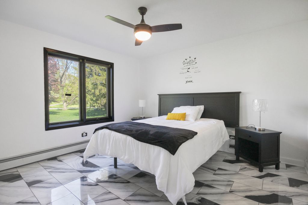 Welcome home to this amazing 5 acre estate sitting on a 20 acre lake. 6 bedrooms and 3 1/2 bathrooms in this 3800 square foot two-story. The main level has 4 bedrooms, two full bathrooms, two living spaces, kitchen (all appliances stay) and dining room. Patio doors from the living room take you outside to your incredible view of the lake. Upstairs you will find 2 more bedrooms, a full bathroom as well as a second kitchen and additional living spaces/office and a charming balcony. With separate entrances, the second level would make for a perfect related living or great spot for guests. Unfinished basement already has a 1/2 bathroom and is just waiting for your touches. Lake rights will make for all of the summer fun! Located less than a mile from the state line, this home is close to everything!