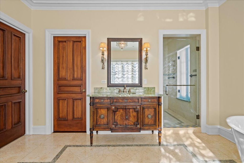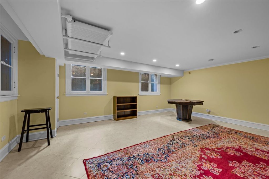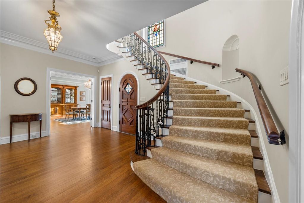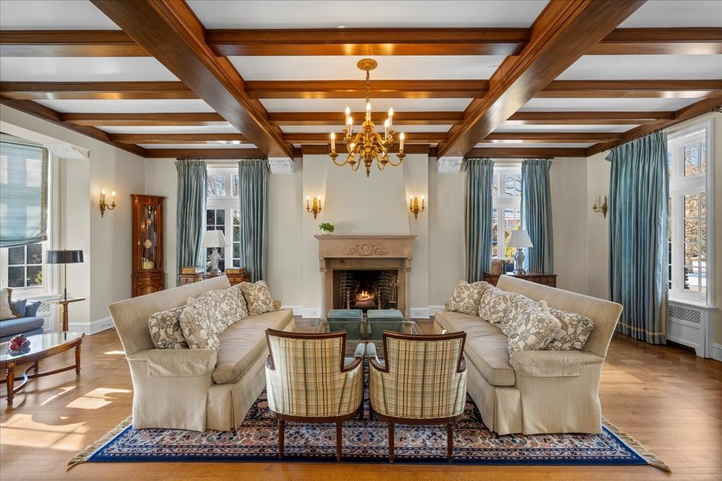 Sought after brick and limestone Georgian on 100 x 175 lot in East Kenilworth. tile roof on Timeless architectural details abound in this exceptional home in East Kenilworth. Plaster cast ceilings, leaded and stain glass windows are just some of the one of kind features that make this home unique in its construction and details. First floor features stunning two-story foyer with iron rail. A step-down living room includes inlaid wood floor, beamed ceiling and bay, and an elegant limestone fireplace. Handsome paneled library with fireplace. An open floor plan creates great spaces for family living and entertaining. Tile roof. Fabulous East location being the third house from Lake Michigan.