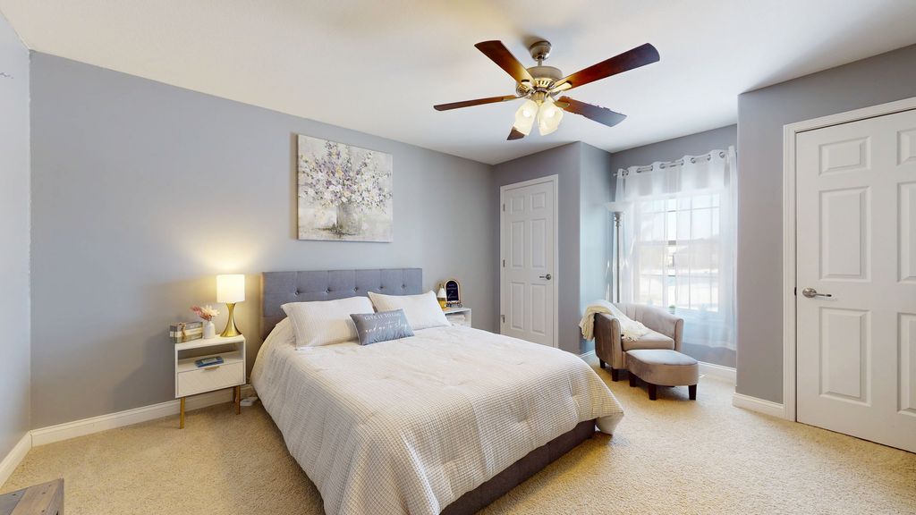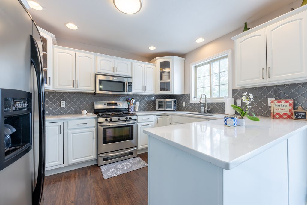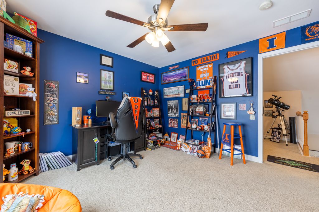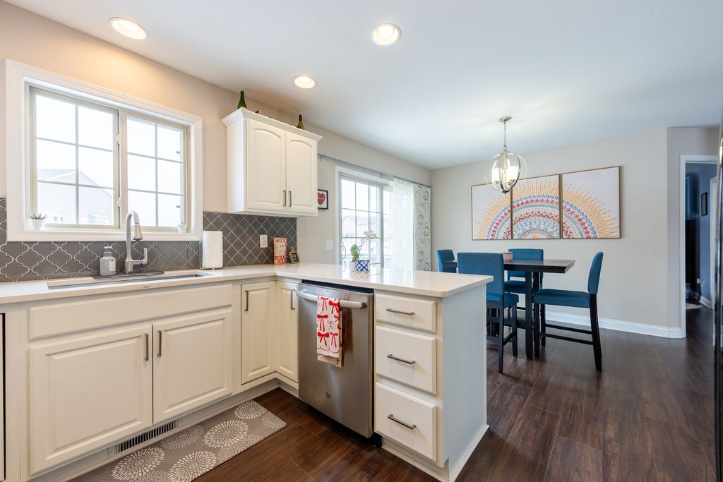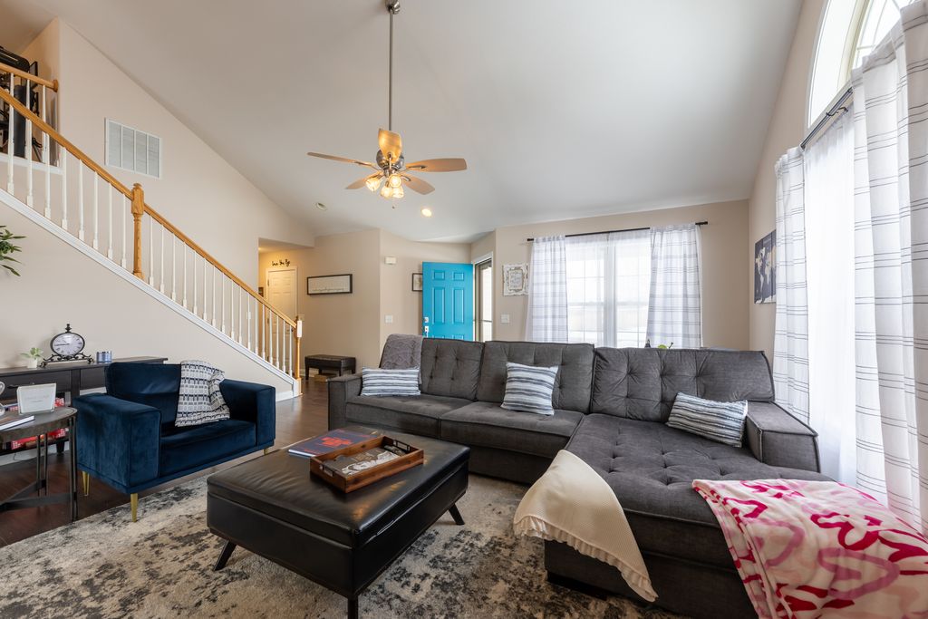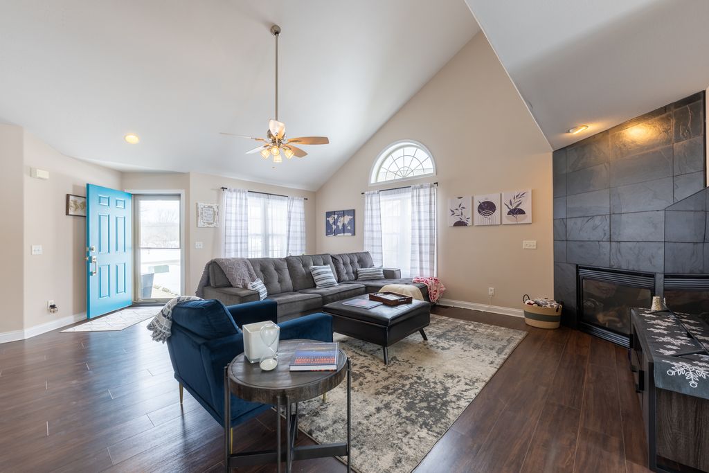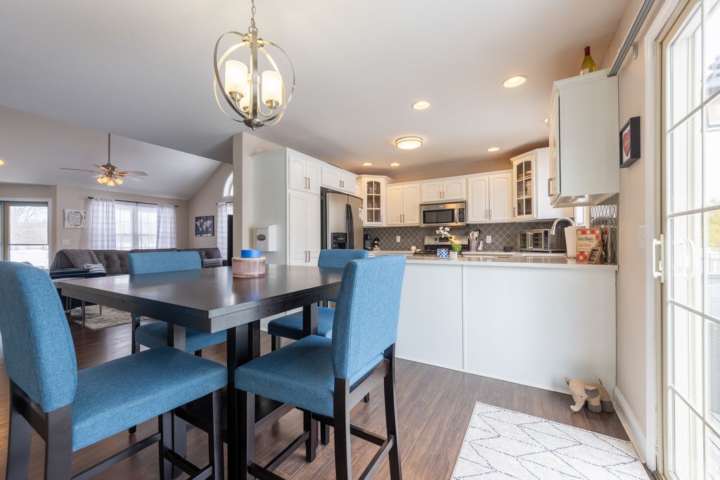 Welcome home to this beautifully updated zero lot in Mahomet! The spacious living room features tall, vaulted ceilings and an abundance of natural light. The kitchen has been remodeled with quartz countertops, a stylish tile backsplash and under cabinet lighting. The primary bedroom is located on the main level with a large en suite bathroom, tile shower and walk in closet. Head upstairs and you will find a loft and two generously sized bedrooms sharing a Jack and Jill bathroom. Head out the backdoor and enjoy sitting on your composite deck while unwinding from the day. From the front porch you can see Lake of the Wood's Golf Course and you have quick access to Lake of the Wood's nearby walking trail. This home comes with access to the nearby private pond perfect for fishing and enjoying the view over the water. Pre inspected for buyer's peace of mind, schedule your showing now!