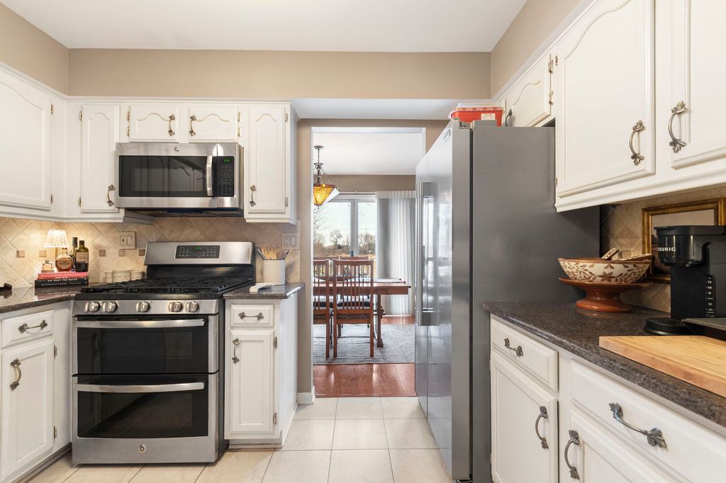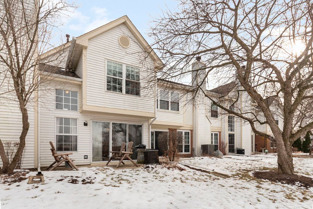 Stunning and private views from this meticulously maintained two-story town home. The living room and dining room offer gleaming wood laminate flooring, vaulted ceilings, a beautiful, warm dining room ceiling light and an abundance of natural light with floor to ceiling windows. The central focal point is the breathtaking gas log all-brick fireplace with a cozy brick hearth and modern white mantel to hang stockings! Embrace nature from the private patio immersed in a view of open land, a butterfly garden and a quiet pond. This home offers the largest floor plan in Maple Hill with a main level family room with gleaming wood laminate flooring, direct garage access and a powder room as well. The kitchen is nicely appointed, with granite counter tops, neutral tile backsplash, and a breakfast bar for plenty of food prep. The kitchen also provides stainless steel appliances, a modern white pantry and white cabinets and drawers for plenty of storage space. Upstairs the primary suite boasts a volume ceiling, a walk-in closet with a closet organizer system and a private bath with a dual vanity, separate shower and soaker tub. The second bedroom is nicely sized and is conveniently adjacent to the hall bath. The loft overlooks the living room and enjoys light-filled, peaceful views. This area could be a library, home office, exercise area or it could be closed off for a third bedroom. White 4 panel wood doors, crown molding, trim, newer windows and fresh interior paint make this home move-in ready. The interior cul-de-sac location provides a tranquil, peaceful ambiance, yet there is easy access to highways, shopping and restaurants. Location, location, location - minutes to the exceptional New Block 59 restaurants in Naperville, Danada shopping in Wheaton and boutique shopping in Geneva! And right across the street from Blackwell Forest Preserve and dog park in case a furry friend needs space to run off leash! And don't forget the beautiful clubhouse with a large swimming pool and hot tub and rooms for large parties! Easy living with no lawn to cut or snow to plow! Hurry - this lovely home won't last long!