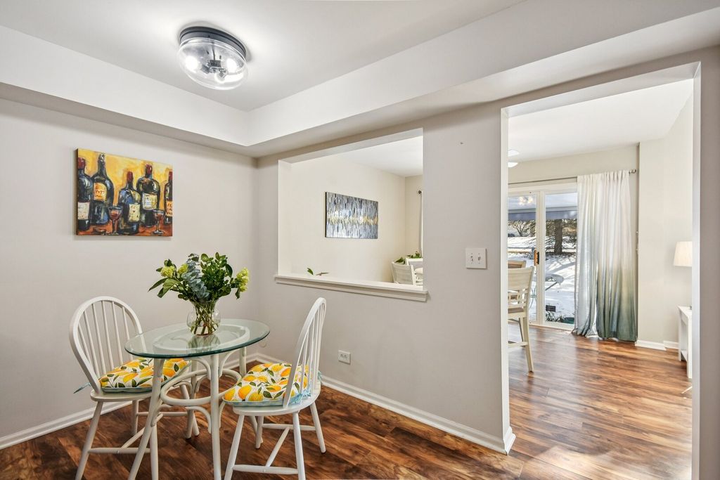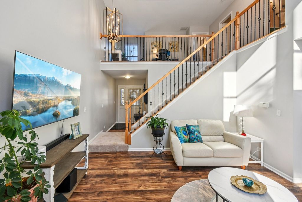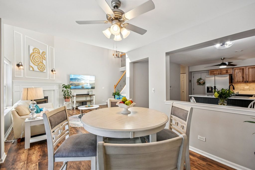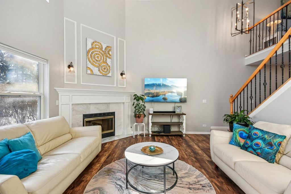 Welcome home to this beautifully updated townhome tucked away on a quiet cul-de-sac in desirable St. Charles! Flooded with natural light, this spacious residence offers 2 bedrooms, 2.1 baths, and a large loft with unlimited potential-perfect for a possible third bedroom, home office, or cozy den. The inviting two-story living room features soaring ceilings and a warm gas log fireplace, creating the ideal space for relaxing or entertaining. The thoughtfully renovated kitchen shines with custom hickory soft-close cabinetry, under-cabinet lighting, quartz countertops, tile backsplash, stainless steel appliances, and a convenient walk-in pantry. Enjoy casual meals in the sunny eating area with a pass-through to the formal dining space, complete with sliding glass doors leading to your private concrete patio with a large electronic retractable awning-perfect for outdoor gatherings. Upstairs, retreat to the spacious primary suite with a walk-in closet and updated ensuite bath. A second bedroom, refreshed hall bath, and laundry room with cabinetry complete the second level. Ample closet space throughout and shelving in the 2-car attached garage provide exceptional storage. Ideally located just minutes from Randall Road's shopping and dining, Otter Cove Aquatic Park, and scenic bike paths, this home also falls within the highly acclaimed St. Charles School District. Stylish updates, flexible living spaces, and an unbeatable location make this townhome a must-see!
