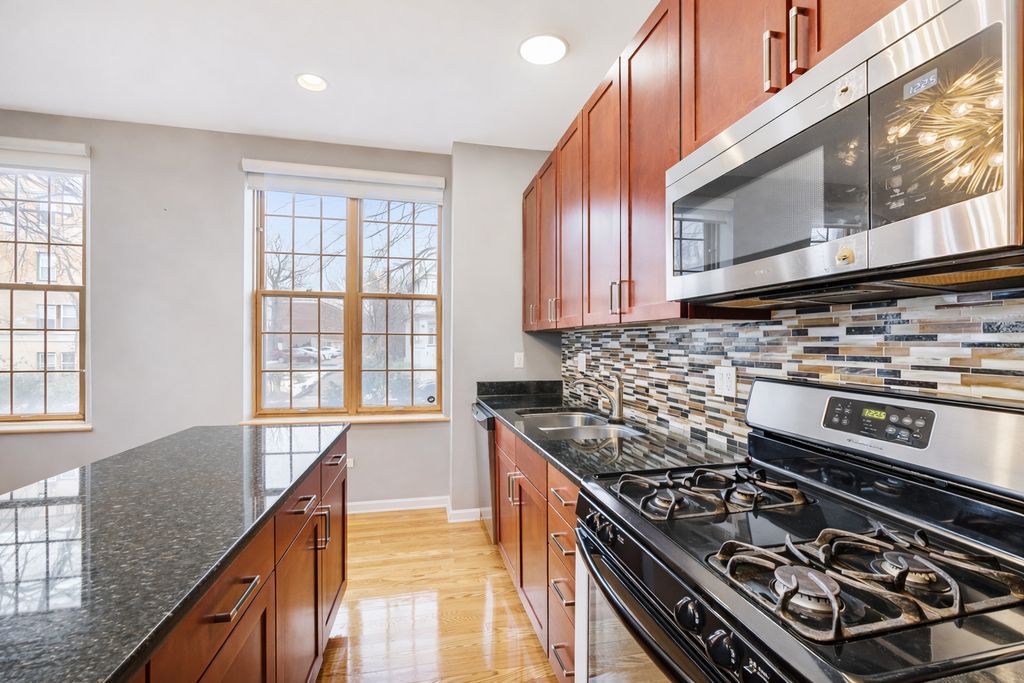 Welcome home to this sun-filled 3 bed / 2.1 bath duplex-down in high sought-after North Kenwood. This oversized corner unit lives like a single-family home with 1,572 sqft of bright, open-concept space, tall windows, and beautiful hardwood floors. The main level features a living/dining area, updated kitchen with large cabinets, durable counters, stainless steel appliances. The serene primary suite offers great closet space and a spa-inspired bath with double vanities, separate shower, and soaking tub. The lower level includes two bedrooms, a second full bath, a stylish media/family room, and in-unit laundry with newer Samsung appliances. Enjoy a nice sized deck for relaxing or entertaining plus deeded garage parking INCLUDED. Located a few blocks from Lake Michigan and minutes from Mandrake Park, IIT, the 43rd Street corridor, Hyde Park, and Bronzeville's best dining and culture. Bright, spacious, updated, and move-in ready - this is North Kenwood living at its finest.