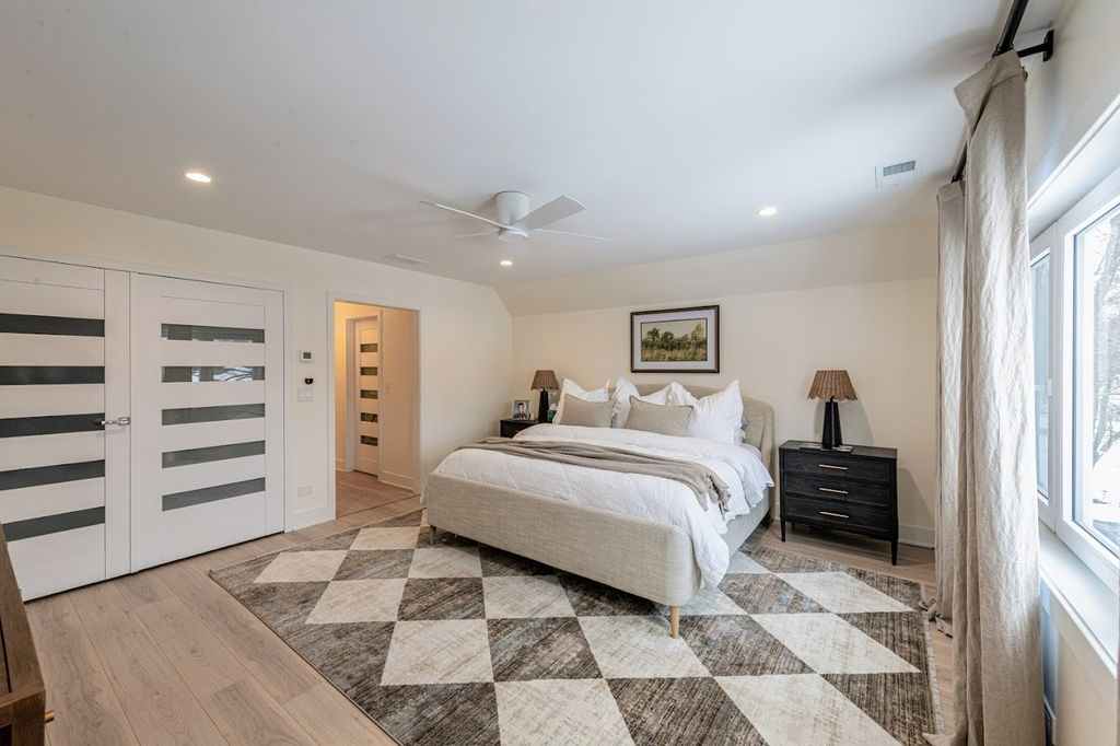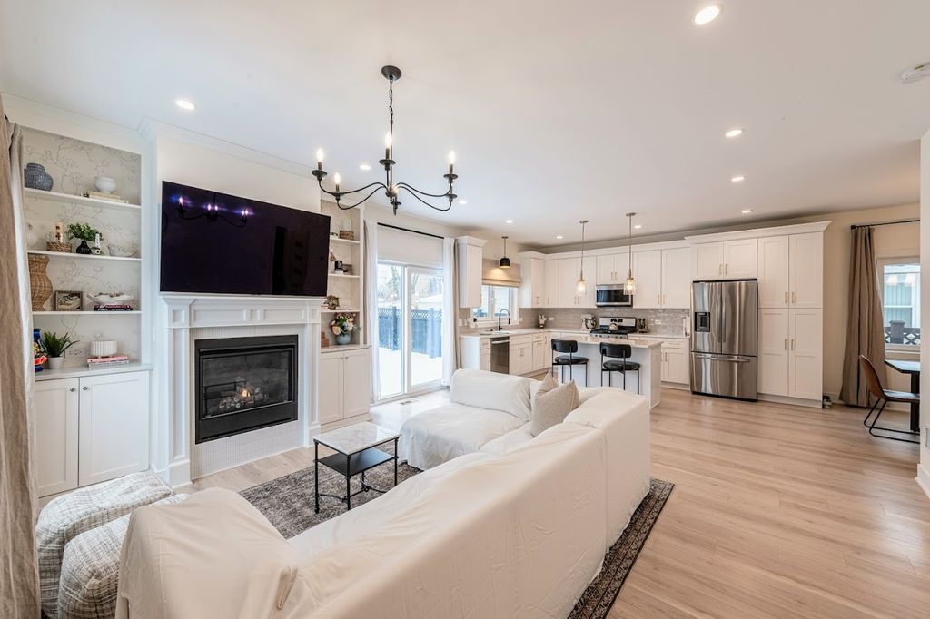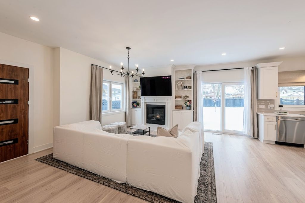 Welcome home to this beautiful modern corner-lot home, now featuring a fully finished basement-perfect for family fun, entertaining, or relaxing. A striking Golden Oak steel front door with polyurethane foam insulation and anti-burglary glass offers durability and peace of mind. The expansive open floor plan showcases sky-high ceilings, an electric fireplace, oversized sliding patio doors, and European double-pane tilt-and-turn windows with high R-value insulation and child safety locks, filling the home with natural light and excellent cross-ventilation. The sophisticated kitchen features white shaker cabinets with crown molding, Bianca Carrara quartz countertops, subway tile backsplash, two windows above the sink, brushed gold hardware, a black sink, and stainless steel appliances, along with a pantry, spice cabinet, lazy Susan, island, and garbage storage. The primary suite offers a private retreat with multiple closets and a luxurious ensuite complete with a double-sink vanity, freestanding soaking tub, and glass-enclosed shower with seating. European interior doors with concealed hinges, magnetic locks, and sleek modern hardware elevate the contemporary design throughout. The newly finished basement adds valuable living space-ideal for a recreation room, media lounge, home gym, or play area. Located just seconds from White Oaks Park with trails, playgrounds, workout stations, bocce court, and picnic shelter. Contact us today to schedule your showing of this incredible space!!