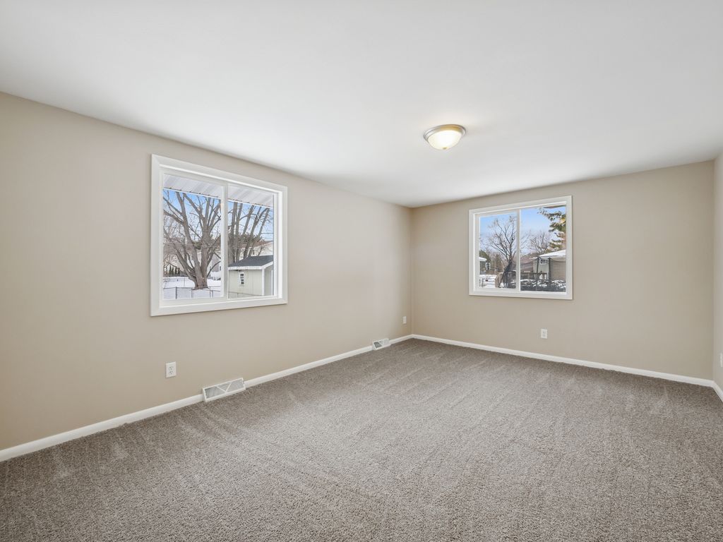 Completely renovated from top to bottom, this ranch home offers peace of mind and easy living. Freshly painted throughout (2025), the main floor features a brand new kitchen with newer stainless steel appliances and breakfast bar island. Enjoy the bright open concept Living Room/Dining Area, highlighted by the expansive vaulted ceiling and brand new flooring (2025). All 3 bedrooms include new carpet (2025) and generously sized closets. New energy-efficient vinyl windows (2025) throughout majority of the home provide ample natural daylight and reduce monthly expenses. The new full-sized bathroom (2025) features an oversized vanity with quality tile finishes. The partially finished basement adds valuable additional space with a new Bonus Room (2025) and second Full Bathroom (2025), while still offering unfinished space for storage or future expansion. Major mechanical updates include New Furnace/AC (2025) and Water Heater (2025). Outside, the oversized 2-car Garage is complete with new 8ft tall overhead door and new opener (2025). New vinyl siding and gutters (2025) on the house provide added durability and low maintenance. This is a truly move-in ready home!