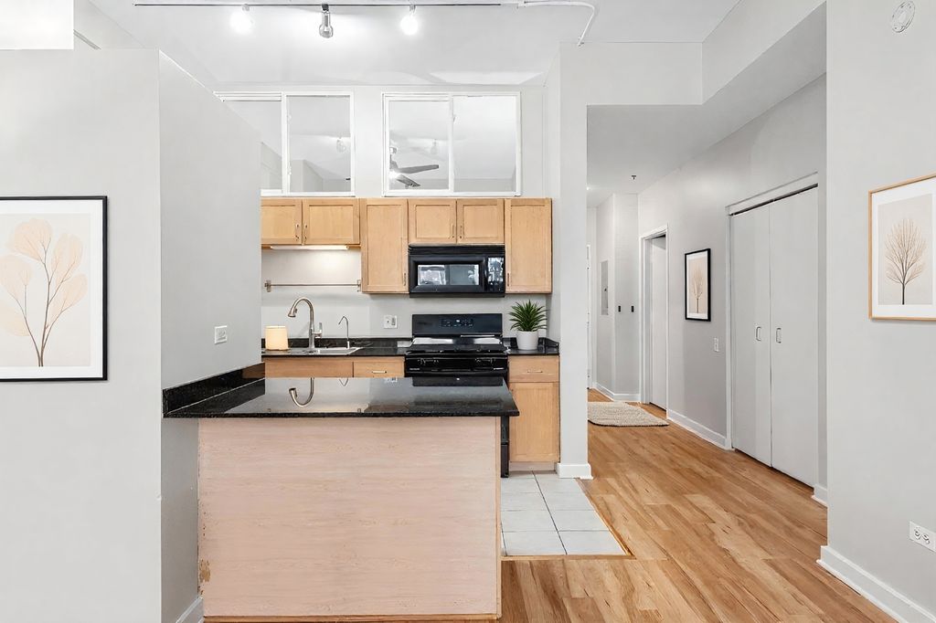 Situated in the heart of historic Jeweler's Row, this south-facing, sun-filled 2-bedroom, 1.5-bath home offers a fantastic layout. Vinyl plank flooring runs seamlessly through the unit, creating a cohesive and modern feel. The spacious primary bedroom features an oversized walk-in closet and an attached bath. Both bathrooms are equipped with large vanities and generous storage. In unit laundry and large, private storage room is conveniently located just down the hall from the unit. Unbeatable location-walk to work, shopping, public transportation, dining, entertainment, Grant Park, and the lakefront.