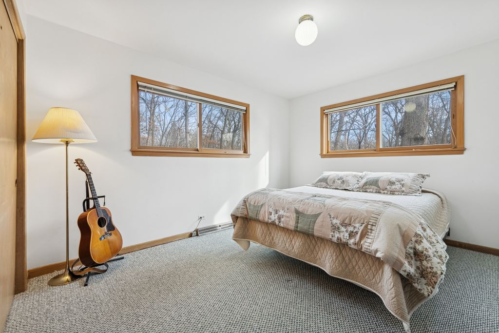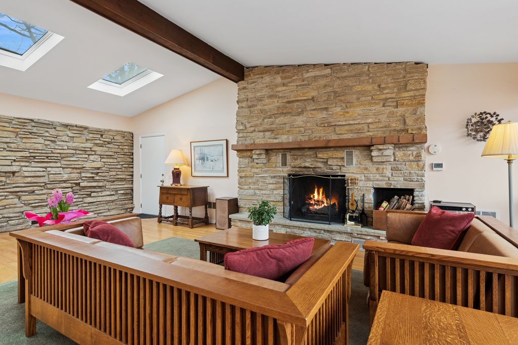 ***Multiple Offers Received. Highest/Best By Wednesday, March 4th at Noon.*** Riverwoods Custom Mid-Century Modern Split Level on a Beautiful Wooded Acre Lot with Oversized 4-Car Heated Garage. The Floor Plan is Open, Airy, with Loads of Natural Light and over 2,900 Square Feet of Living Space. Oak Hardwood Flooring Throughout. Living Room Has Stunning Wall of Windows Overlooking Gorgeous Backyard Landscape Loaded with Wildlife. Vaulted Kitchen Offers, Skylights, Custom Cabinets, Swanstone Composite Countertop and Newer GE Profile Stainless Appliances. Huge Great Room Features Vaulted Ceiling, Skylights, Fireplace, and Walks Out to 23' x 15' Deck. 2nd Level Offers Three Ample Sized Bedrooms and Updated Bathroom. English Lower-Level Offers Family Room, Fourth Bedroom and Large Full Bathroom. 4-Car Garage Has Over 1,000 sf, Workshop, Heat and Walks Out to Patio. New Furnace. Privacy and Nature's Tranquility with Classic Mid-Century Modern Architecture Define This Home. Perfect for Growing Families, Auto or Boat Enthusiasts. Convenient to Award Winning Schools and I94.