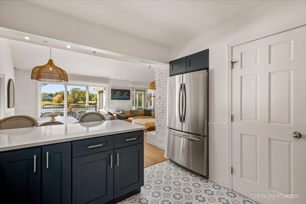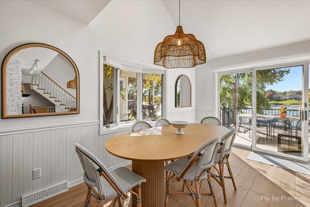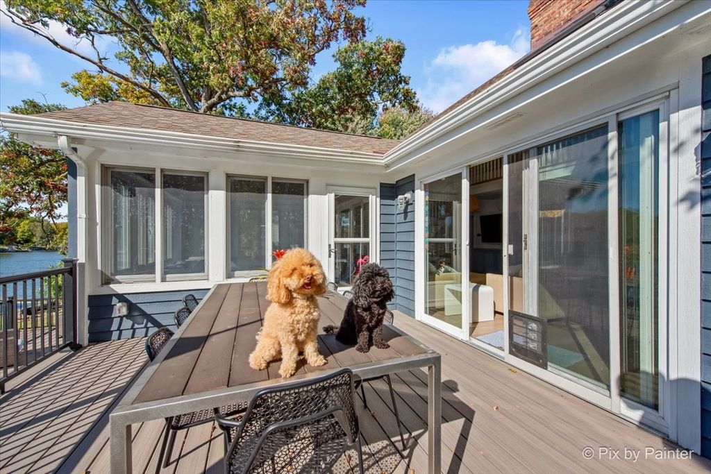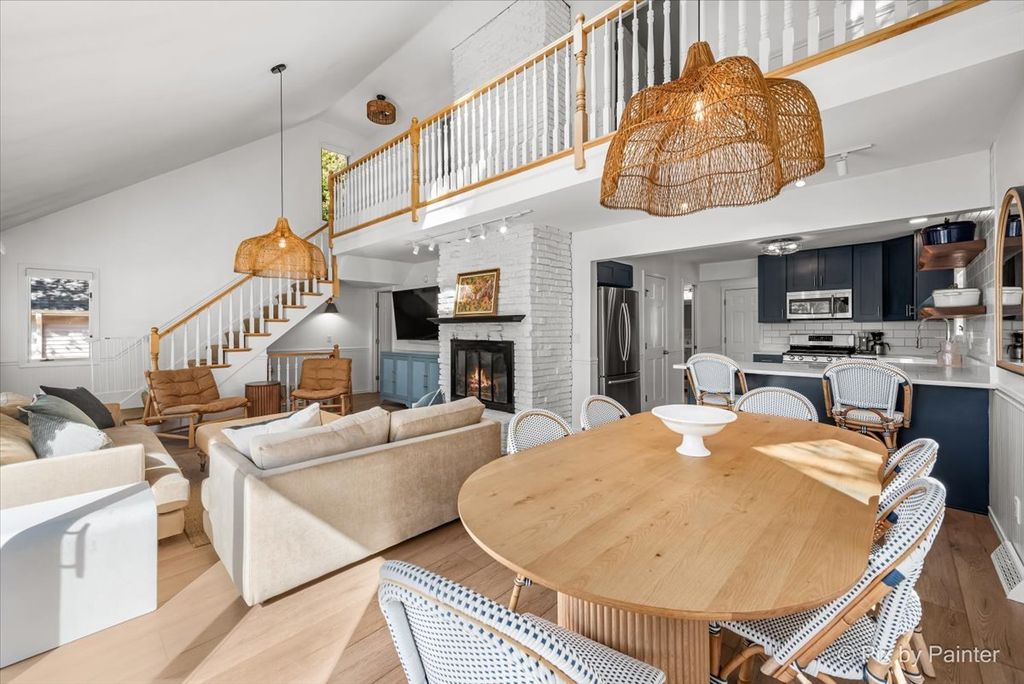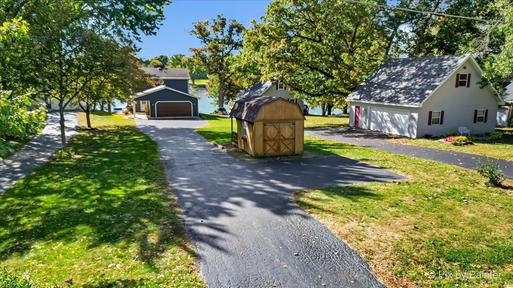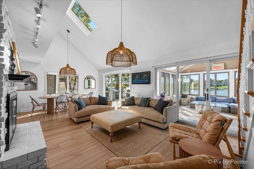 Picture-perfect and lake-life ready! This stunning 4-bedroom, 3-bath home sits on a flat lot with a private sandy beach, walk-out basement, and front-row seats to the best of Lake Holiday. Thoughtfully and continuously upgraded, both the home and grounds are completely move-in ready. Inside sports a brand-new kitchen featuring indigo blue cabinetry, quartz countertops, a porcelain farmhouse sink, white subway tile backsplash and black walnut shelving. A dramatic two-story living room with a wood-burning fireplace flows effortlessly into a light-drenched sunroom where walls of windows frame forever lake views. There's a convenient first floor primary suite while two lofted bedrooms upstairs share a Jack-and-Jill bath. With three full levels of living, the walk-out basement hosts a second king-size sleeping area, additional family room, cozy seating space, and sliding doors that lead straight to the hot tub. Step outside to the best of summer living: a brand-new two-level composite deck, heated pool, paver fire pit, and a charming walkway down to your own beach. A 2-car attached garage, custom cedar storage shed with a play loft, along with a short walk to the zip-line at Beach #2, put the finishing touches on this exceptional home. Lake life doesn't get better than this. Broker owned