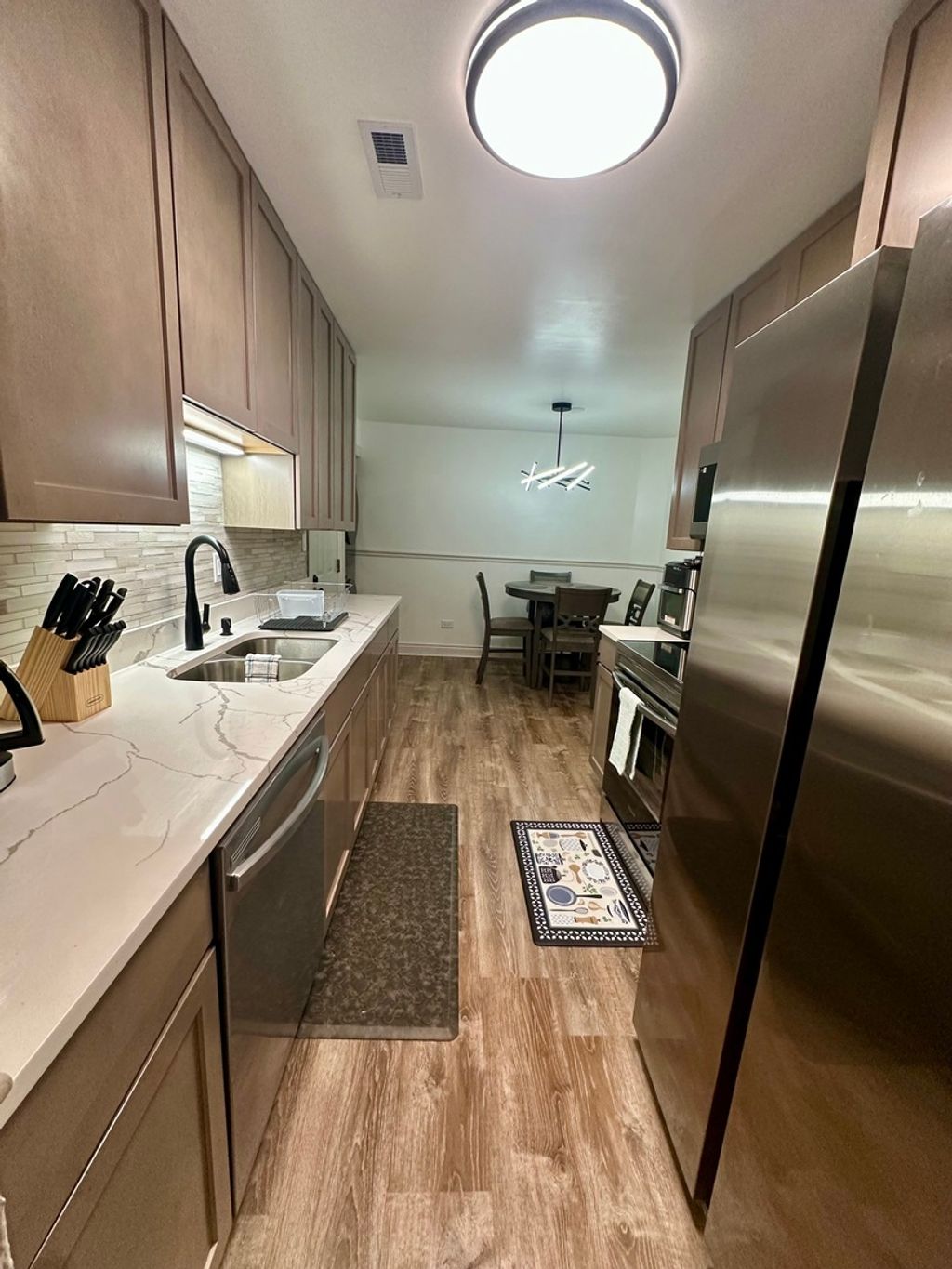 Beautifully rehabbed 3-bedroom, 2-bath second-floor condo featuring modern updates, spacious interiors, and multiple convenience upgrades. Renovated in 2024, this unit includes all-new appliances-oven, refrigerator, microwave, dishwasher, and in-unit washer/dryer-all included with the sale. The condo is partially furnished, and most of the existing furniture will remain, offering a true move-in-ready experience. The unit also provides two separate entries, adding flexibility, convenience, and privacy. The interior features large bedrooms and spacious bathrooms, including a primary suite with a private en-suite bath. The extra-large living room includes a fireplace for added warmth and charm and opens to a private balcony with views of the surrounding area. Adjacent to the kitchen is a cozy dinette area-perfect for everyday dining. Additional highlights include private storage and a dedicated parking space under the carport, providing year-round protection and convenience. Located on the second floor, this condo offers comfort, privacy, and modern living throughout. HOA will be updating the exterior of the building as well as the parking area. This property borders Indiana, sits directly across from a school, and farmers market. Major highways are just minutes away (80/94/394). A turnkey home ready for its next owner.