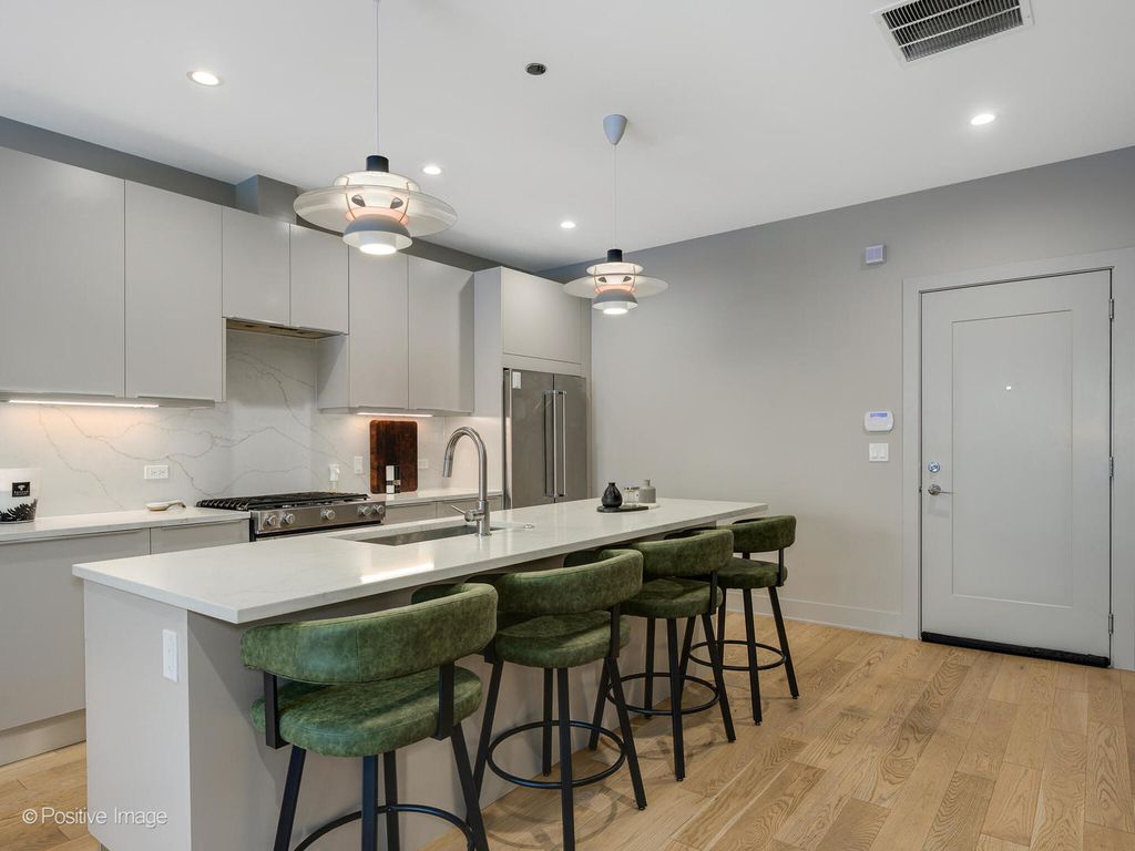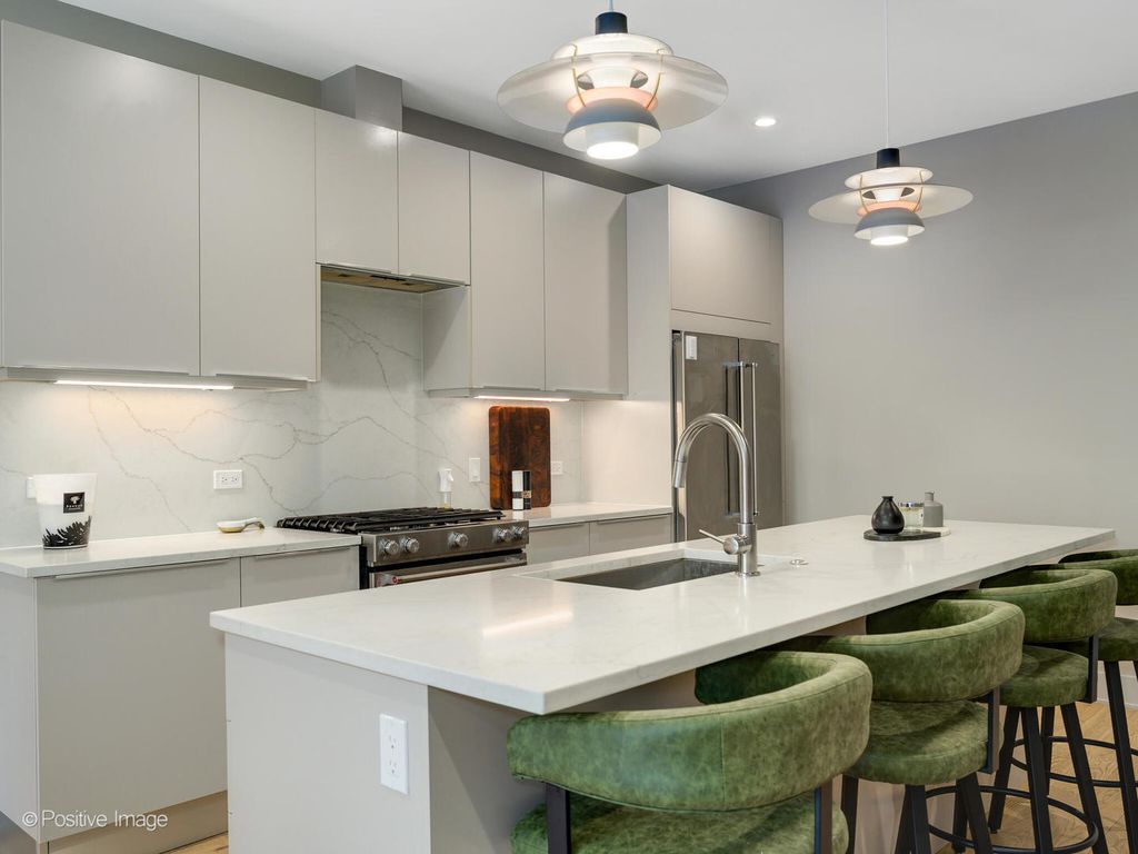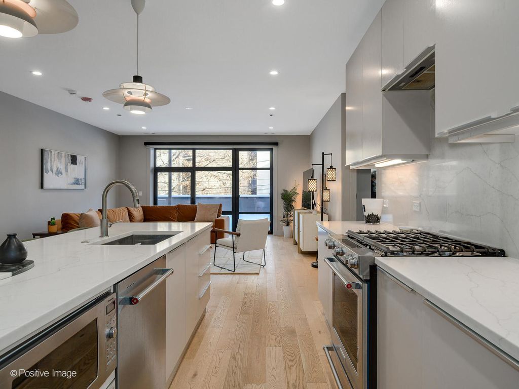 Welcome home to your incredible, newer construction, 3-bedroom, 2-bathroom condo in a fantastic West Town location. Thoughtfully designed with a stunning layout, elevated finishes, and modern style throughout, this home offers exceptional comfort and functionality. The open-concept kitchen is a true showpiece, featuring a stunning Italian kitchen by Scavolini. The expansive island offers generous counter space for both everyday cooking and effortless entertaining, along with abundant storage. The kitchen flows seamlessly into the dining and living areas, creating an ideal space for gathering, and extends directly to your enormous private walkout deck with gas hookup - perfect for indoor-outdoor living. Expansive east-facing windows flood the home with natural light, complemented by recently installed custom blinds. The spacious primary suite features built-out closets and a luxurious en suite bath with heated floors. All closets throughout the home have been professionally built out for maximum organization and functionality. This elevator building truly checks every box, offering an attached heated garage with one included parking space, along with a large shared rooftop deck complete with a dog run, abundant seating areas for relaxing or entertaining, and skyline views. Thoughtfully constructed in 2024 with precast concrete slabs between each floor, providing exceptional sound insulation and a peaceful living environment.