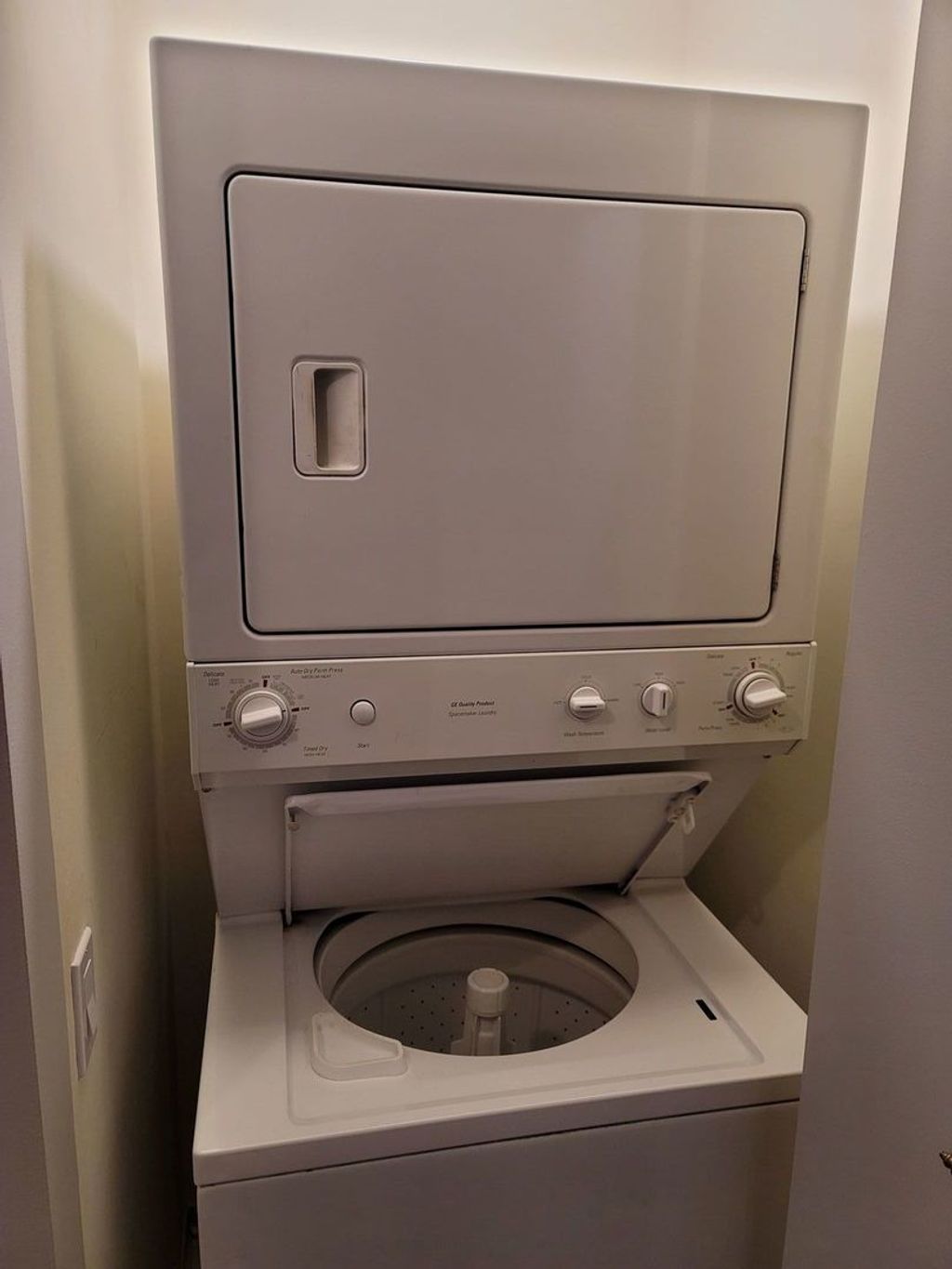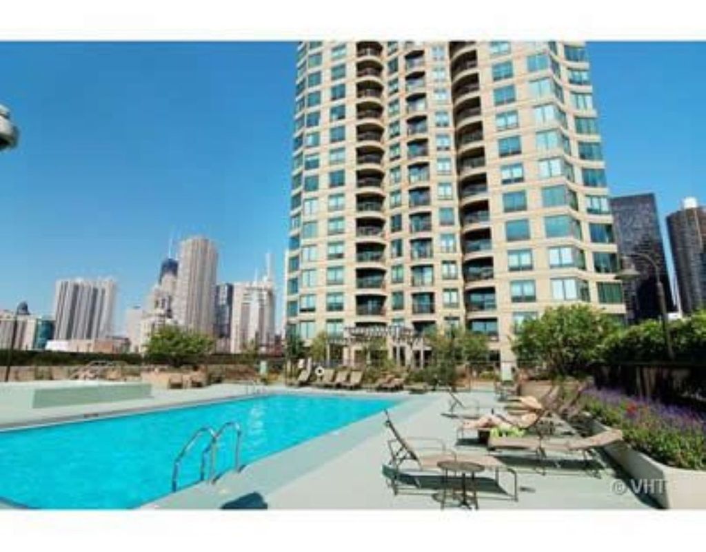 Stunning west and north sunset views from this expansive 850 sq. ft. one-bedroom residence in the heart of River North. The home features rich dark flooring throughout, a modern gray tone palette and an open-concept layout. Expansive windows flood the living space with abundant natural light. The sleek galley kitchen is appointed with granite countertops, stainless steel appliances, light wood cabinetry, and a new washer/dryer in Foyer. The generously sized bedroom accommodates a king-size bed, dressers and a workspace, and is complemented by a spacious walk-in closet. Located in a full-amenity building, residents enjoy 24-hour door staff, on-site management, fitness center, outdoor pool, sun deck with fire pit, grilling area, party room, plus an assigned storage locker. The building is investor-friendly, and pets are allowed! Unmatched River North location offering immediate access to the Chicago River walk, premier dining, shopping, nightlife, theaters, and public transportation. An exceptional opportunity to own a sophisticated urban home in one of Chicago's most desirable neighborhoods. Parking can be rented from Parking Company or another owner. Monthly Assessment listed- includes Cable and high-speed Interned fee's.