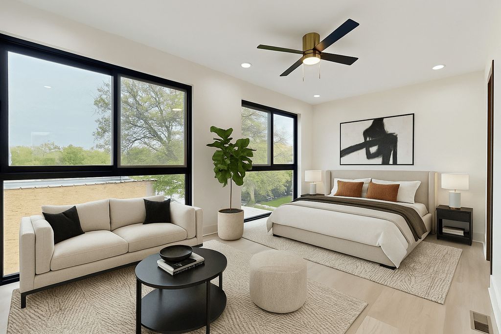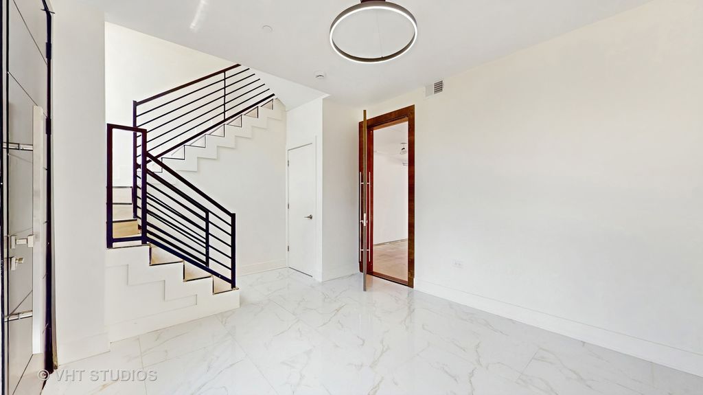 Ready-to-move-in new construction featuring aluminum steel framing and commercial-grade materials throughout. This upscale, modern townhome offers exceptional design, quality craftsmanship, and a bright, open layout. Ideally located near parks, Metra, major highways, restaurants, shopping, entertainment, fitness centers, Starbucks, Amazon Fresh, and more-providing excellent accessibility and everyday convenience. Designed with a contemporary aesthetic, the home features floor-to-ceiling folding doors and full-wall glass panels that bring in abundant natural light. All units face south, enhancing sun exposure throughout the day. This thoughtfully designed 3-story townhome includes: 3 bedrooms and 3 full bathrooms Finished first level with direct access from the attached 2-car garage-ideal for a home office, media room, gym, or additional living space Main level with open-concept living, dining, and kitchen areas, two balconies, and an additional bedroom Third level featuring two bedrooms, laundry, and a full bath, including a primary suite with en-suite bathroom High-end kitchen with stainless steel appliances and Dekton countertops, ideal for entertaining A rare opportunity to own a brand-new home with modern architecture, high-end finishes, and attention to detail throughout. Move in and enjoy low-maintenance, contemporary living.