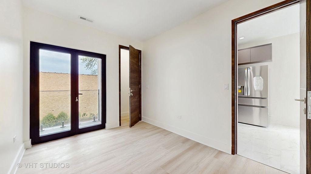 Ready-to-move-in new construction featuring aluminum steel framing and commercial-grade materials throughout. This upscale, modern townhome offers exceptional design, quality craftsmanship, and a bright, open layout. Ideally located near parks, Metra, major highways, restaurants, shopping, entertainment, fitness centers, Starbucks, Amazon Fresh, and more-providing excellent accessibility and everyday convenience. Designed with a contemporary aesthetic, the home features floor-to-ceiling folding doors and full-wall glass panels that bring in abundant natural light. All units face south, enhancing sun exposure throughout the day. This thoughtfully designed 3-story townhome includes: 3 bedrooms and 3 full bathrooms Finished first level with direct access from the attached 2-car garage-ideal for a home office, media room, gym, or additional living space Main level with open-concept living, dining, and kitchen areas, two balconies, and an additional bedroom Third level featuring two bedrooms, laundry, and a full bath, including a primary suite with en-suite bathroom High-end kitchen with stainless steel appliances and Dekton countertops, ideal for entertaining A rare opportunity to own a brand-new home with modern architecture, high-end finishes, and attention to detail throughout. Move in and enjoy low-maintenance, contemporary living.