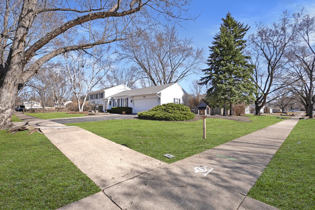 This well-loved home offers the kind of comfort and care you can feel the moment you arrive, starting with the enclosed entryway that welcomes you in and keeps the elements at bay~Inside, vaulted ceilings in the living room and kitchen create an open, airy feel~The kitchen has been nicely maintained and features a breakfast bar with room for stools, separate table space, staggered cabinets, recessed lighting and a charming garden window over the sink - perfect for soaking in views of the expansive, professionally landscaped yard~The lower level family room is visible from the kitchen which is perfect for entertaining~Step out through the newer sliding glass door (with built-in blinds) to a patio and fully fenced yard - generous in size (home sits on 1/3 acre), beautifully cared for, and ideal for relaxing or letting pets roam freely~The attached, heated garage has a workbench and a convenient service door to the yard~All bedrooms up have ceiling fans~Main bathroom has a dual vanity~Many lights on dimmer switches~All of this is set on a double cul-de-sac and in the highly sought-after Naperville School District #203