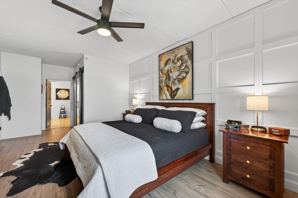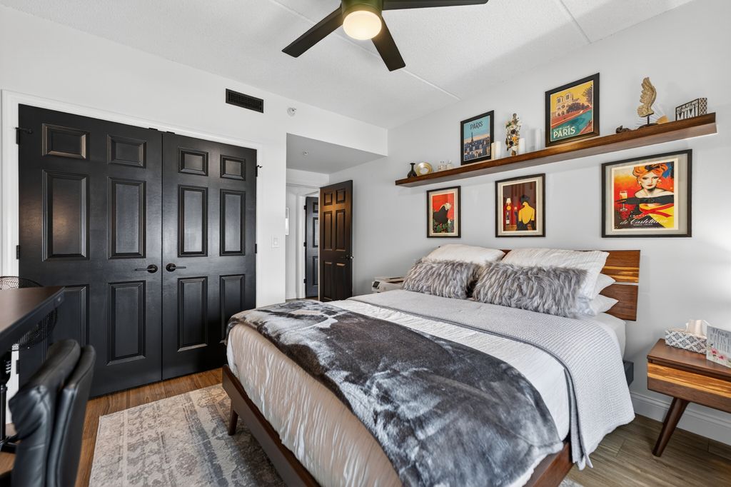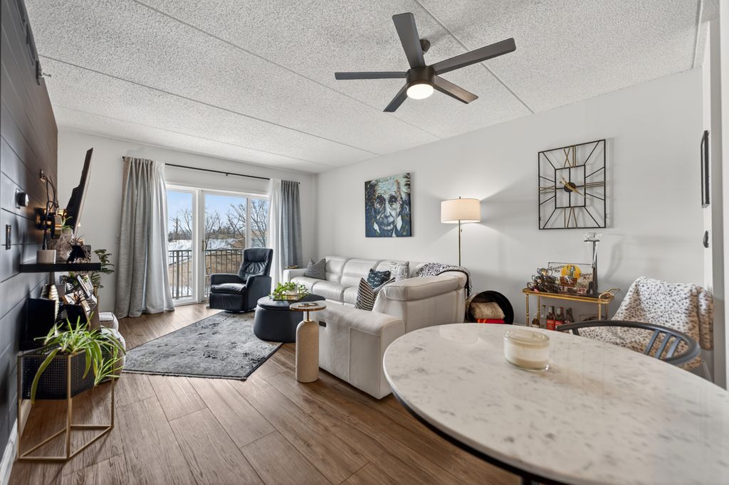 This updated 2-bedroom, 2-bath condo offers modern finishes, a private balcony, and a private detached 2-car garage with additional storage closets in a convenient Lombard location. The home has been improved and well maintained over the past couple of years, featuring wide-plank waterproof luxury vinyl flooring, updated baseboards, refreshed paint, upgraded lighting, ceiling fans, and newer hardware throughout. The kitchen was redesigned with quartz countertops, a solid wood butcher block island, stainless steel appliances, vertical tile backsplash, and under-cabinet lighting. Both bathrooms have been updated, including a hall bath with refreshed tilework, cultured marble vanity, updated fixtures, mirrors, lighting, and a built-in Bluetooth speaker, while the primary ensuite includes large tile flooring, a double vanity with granite tops, soaking tub, and separate shower. Custom solid wood closet organizers were added throughout, including the laundry room, along with sliding barn doors for added functionality. The main living area connects to the dining space and kitchen with sliding doors leading to the balcony. Mechanical features include central air installed in 2016, radiant heat, insulated windows added in 2022, and a Google smart thermostat. The parking lot was recently newly paved. Located directly across from Lombard Commons and Paradise Bay Water Park and just minutes to the Metra, downtown Lombard, and the Great Western Trail and Prairie Path, this move-in-ready home offers updated living in a highly accessible setting.