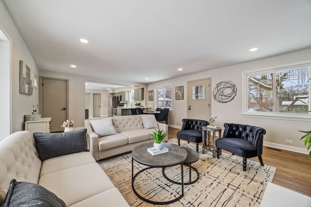 Stunning fully remodeled home situated on a large corner lot, offering exceptional space, style, and modern functionality. This beautifully updated residence features 3 spacious bedrooms upstairs, 2.1 bathrooms, and a thoughtfully designed layout ideal for today's lifestyle. The main level showcases an open and inviting living space with recessed lighting, hardwood floors, and seamless flow into the dining area and designer kitchen. The kitchen is a true standout, featuring custom cabinetry, stainless steel appliances, expansive counter space, and a rare walk-in pantry for added storage and convenience. The private primary suite offers a relaxing retreat with an updated en-suite bath. The fully finished basement expands the living space with an additional bedroom and attached full bathroom-perfect for guests, extended family, or a home office-along with a large recreation area. This home has been completely remodeled from top to bottom, including new plumbing, electrical, HVAC, and modern finishes throughout, providing peace of mind for years to come. Located on a generous corner lot with ample outdoor space and great curb appeal, this move-in ready home is close to schools, parks, shopping, and transportation. A rare opportunity to own a truly turnkey property with space for everyone.