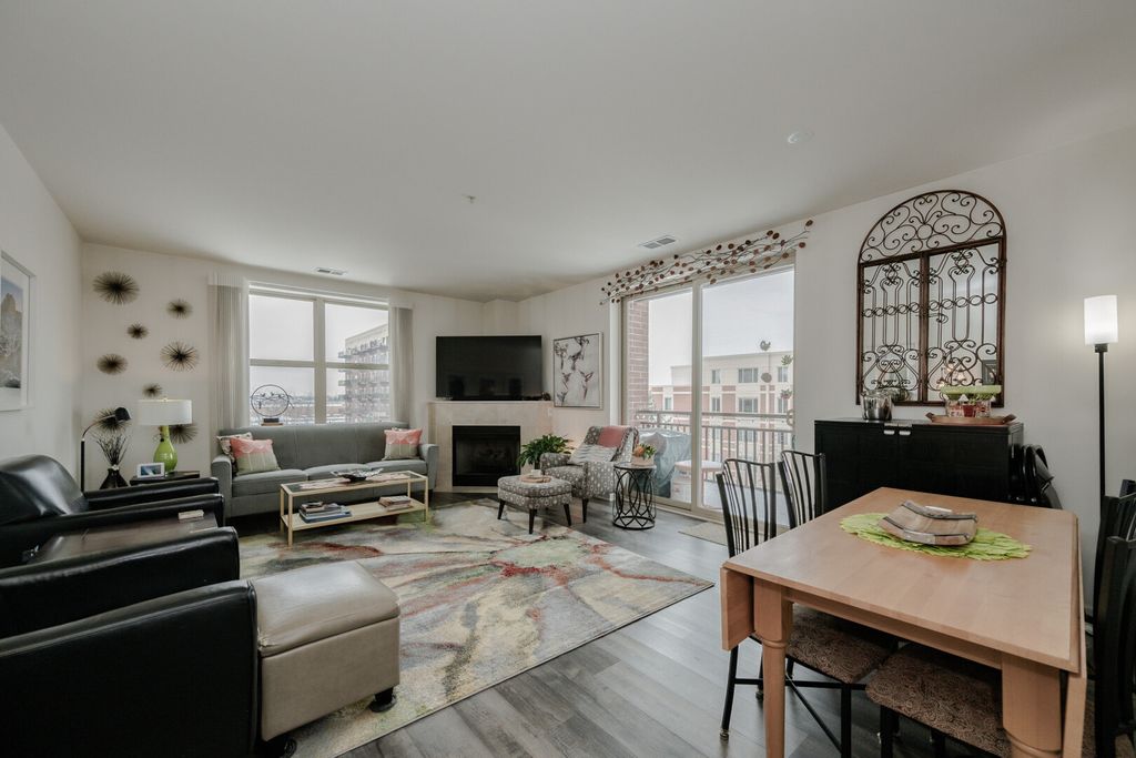 Awesome corner unit at desirable Riverwoods!! 55+ building, percentage allowed under 55. Cable tv/ internet included in monthly assessment!!!!!Very private balcony has views of woods and open area. Newer luxury vinyl flooring. Updated kitchen with newer S/S appliances, corian counters and tile backsplash. In unit laundry! Unit garage space has an electric car charger installed. Building has exercise room, party room, and large back community patio. Complex has indoor pool available for membership.