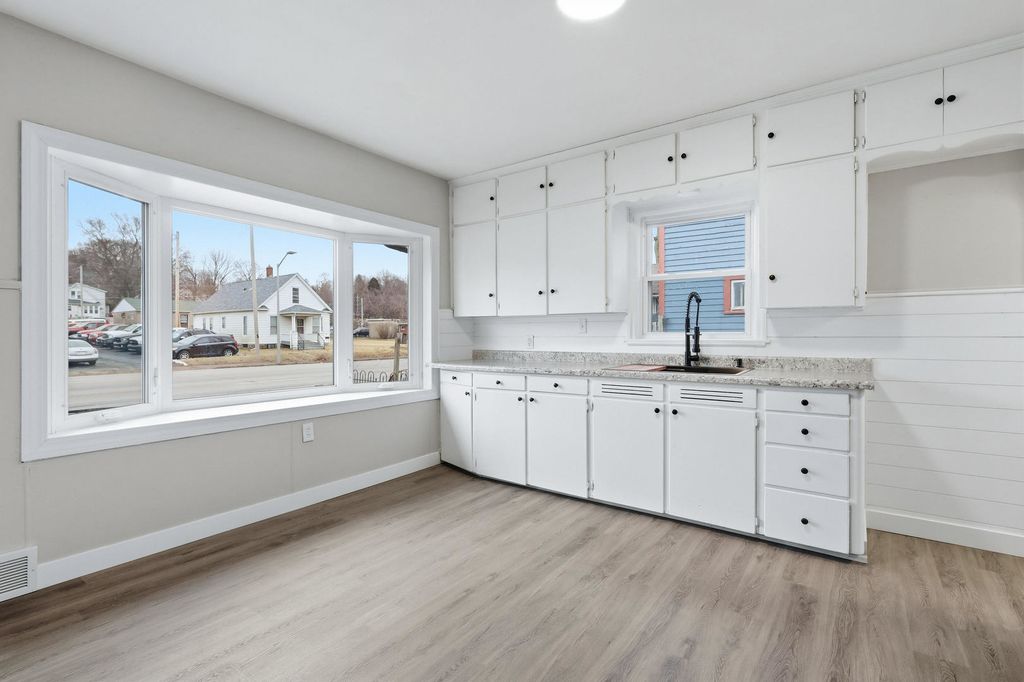 Check out this GREAT VALUE that is move-in ready and waiting for you! Why rent when you could possibly own for the same amount or less! This cozy brick ranch style home has just had windows replaced, new flooring installed, walls & trim painted throughout and new stainless steel appliances, plus more....all the work has been done for the new owner to enjoy. The spacious eat-in kitchen has been refreshed with new counter top, a beautiful new stainless steel single well work station sink with cutting board, colander, med. sink & soap dispenser attachments plus a modern multi-spray faucet, NEW stainless appliances, new luxury vinyl plank flooring and a beautiful bay window to allow great light flow & a sunny spot for plants to thrive. Living room also features a beautiful bay window, cozy fireplace for cosmetic appeal and new carpet. The 2 main floor bedrooms feature new carpet and paint as well. The main bath has also been refreshed with new vanity, lighting, mirror, LVP flooring, paint, toilet and tub surround. Expand into the lower level with freshly painted walls and floors just waiting for you to finish the way you choose. The detached garage offers you space to keep your vehicles and other items out of the elements. Yard has also been seeded and ready for the Spring growth. Call today for your private showing before it is too late.