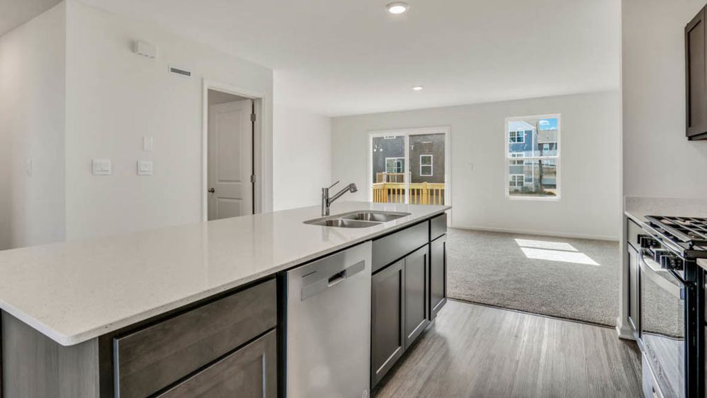 Discover yourself at 427 Lakeshore Ct. This beautiful end-unit townhome is in our Charlestowne Lakes community in St. Charles, Illinois, and will be ready for a late Summer move-in. This Grant plan offers 1827 square feet of living space with 3 bedrooms, 2.5 baths, and an additional flex space. Upon entering the home, you will be greeted by the finished flex room, which would be perfect as a den, office or playroom. Walking up the stairs, you will find this home's open concept living space. The expansive kitchen is central to both the dining and great rooms and is the perfect space to gather. The kitchen features designer soft-close cabinetry, a large island with quartz countertops, a pantry, and stainless-steel appliances. Upstairs you will find a large primary bedroom with a spacious walk-in closet and en suite bath. There is also a laundry room, a second full bath, and two additional bedrooms. Decorate with the updated Craftsman style trim and 5-panel doors. Luxury vinyl plank flooring is included in the great room, kitchen, dining area, all baths, and the laundry room. All homes at Charlestowne Lakes include fully sodded yards and maintenance-free living. Photos are of similar home.