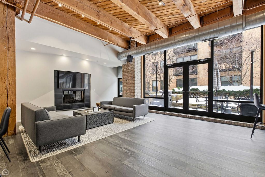 Spacious one-bedroom, one-bath loft in the heart of the West Loop. This well-designed home features a gracious entry foyer with coat closet and separate laundry room offering additional storage. The open-concept kitchen flows into the living area with space for dining and includes granite countertops, a large pantry, and an oversized breakfast bar with ample seating. Classic Chicago loft details shine with exposed brick, 12' timber ceilings, and hardwood floors throughout the main living areas. The oversized bedroom easily accommodates a king-size bed and offers a walk-in closet. Bathroom features a banjo countertop for maximum functionality. Additional highlights include central heat and air, in-unit laundry, and extra storage. Attached garage parking available for $25,000. Full-amenity building with 24-hour door staff, fitness center, business center, conference room, community room with kitchen and pool table, movie theater, and sundeck. Unbeatable West Loop location near top restaurants on Madison, Randolph, and Fulton Market, with easy access to I-90/94, I-290, Blue Line CTA, and bus routes.