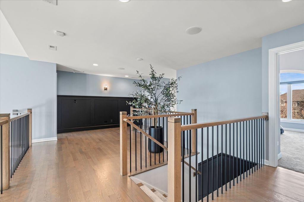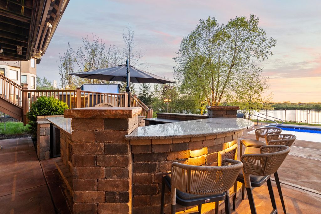 WELCOME TO LINCOLN-WAY LUXURY! Situated on a verdant half-acre lot with breathtaking views and priceless sunsets! The perfect blend of modern and contemporary luxury living in an absolutely priceless setting. Resort-style amenities and a fully integrated smart home experience. Ultra upgraded and recently renovated home with sleek and sophisticated custom finishes. Recently enhanced with commercial-grade technology and meticulously curated design upgrades that wow at every turn. Beautifully refinished modern hardwood floors and striking black-painted ceiling beams that set the tone for a sophisticated ambiance. An all-new, custom staircase and banister lead to plush, high-end carpeting in the bedrooms and master closet, while every wall, baseboard, and door has been freshly painted for a seamless look. Entertain on a grand scale in the open-concept kitchen, thoughtfully updated with a new backsplash, large stainless-steel sink, Kohler faucet, sleek cabinet hardware, and under-counter wine fridge. The adjacent great room showcases a newly white-washed fireplace, and a custom LED stunning chandelier, while a mounted 86-inch TV and color-controllable smart lighting throughout the home elevate every gathering. The fully integrated Sonos system features 60+ flush-mounted speakers and 16+ separately zoned amps-perfect for music, movies, or game-day excitement. Downstairs, discover a FINISHED WALKOUT basement built for entertaining, boasting a custom epoxy bar with a 6-TV array, commercial 3-door beverage fridge, three-sided fireplace, and a custom 500 sq. ft. putting green. A whole-home Unifi Wi-Fi system, commercial-grade security cameras, Nest Protect detectors, four Nest thermostats, and a tankless water heater blend convenience and peace of mind. Outdoors, enjoy the professionally landscaped yard with front and backyard lighting, a saltwater pool, hot tub, built-in bar, and firepit, all designed for an unparalleled staycation vibe. With every upgrade thoughtfully executed-from modern lighting to black roller shades-this home offers a truly one-of-a-kind, resort-like experience in the heart of Mokena. Imagine the parties that you can have here! Close to shopping, dining, expressways, the future Pete's Fresh Market and Crossroads Sportsplex. WATCH FULL LENGTH VIDEO! Motivated seller, will look at all offers!!