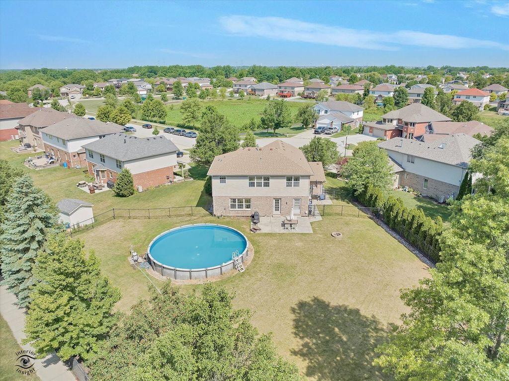 Welcome to this spacious and beautifully designed home located in the desirable White Oaks Estates of Frankfort, Illinois. Boasting over 3,200 square feet of living space, this 4-bedroom, 2.5-bath residence offers generous room sizes, thoughtful design features, and an ideal location near a community park. Step inside to a dramatic 30 x 13 family room featuring a cozy fireplace perfect for relaxing or entertaining. The formal dining room impresses with soaring cathedral ceilings, a bay window, and ample space for large gatherings. The primary suite is a true retreat, offering a 16 x 14-bedroom, vaulted ceiling, large bath with whirlpool tub, an attached 10 x 10 private office or sitting room, and a spacious 12 x 8 walk-in closet. A full unfinished basement with 9-foot ceilings and rough-in plumbing provides endless potential for future expansion. Outside, enjoy a large yard complete with an above-ground pool-perfect for summer fun. A 3-car garage provides plenty of storage and convenience. Located in a peaceful, established neighborhood near parks, schools, and all that Frankfort has to offer, this home combines comfort, space, and a prime location. Don't miss this exceptional opportunity!