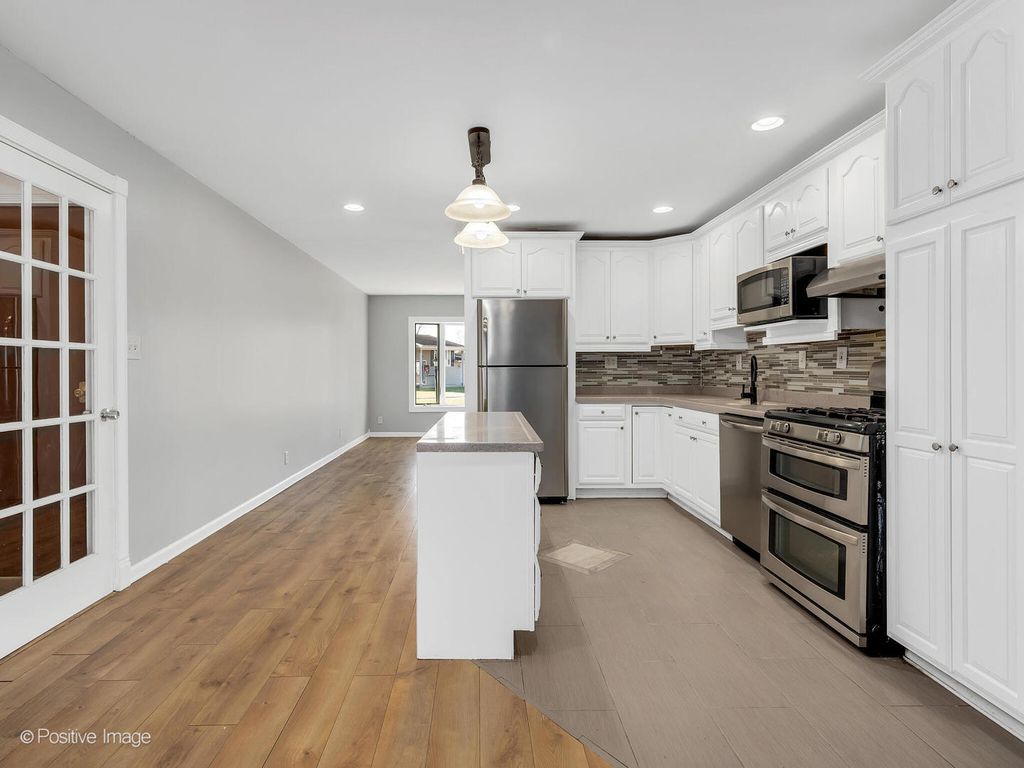 MOVE-IN READY RANCH! This gorgeous home features a bright living room highlighted by a large front bay window. Enjoy the spacious great room with vaulted ceilings, a cozy fireplace, and direct access to the patio ~ perfect for entertaining. The kitchen offers an island, all stainless-steel appliances, and a convenient laundry closet nearby. The primary bedroom includes a private ensuite bath and large walk-in closet with shelving. Two additional bedrooms, a bonus room, and another full bath complete the home. Step outside to a large, fully fenced backyard ready for outdoor fun, plus extra storage in the 14x12 shed. Ideally located within walking distance to the elementary school and several parks, and just minutes from dining, shopping, and easy access to I-90 and I-290. Several freshly painted rooms, put this on your must see list!