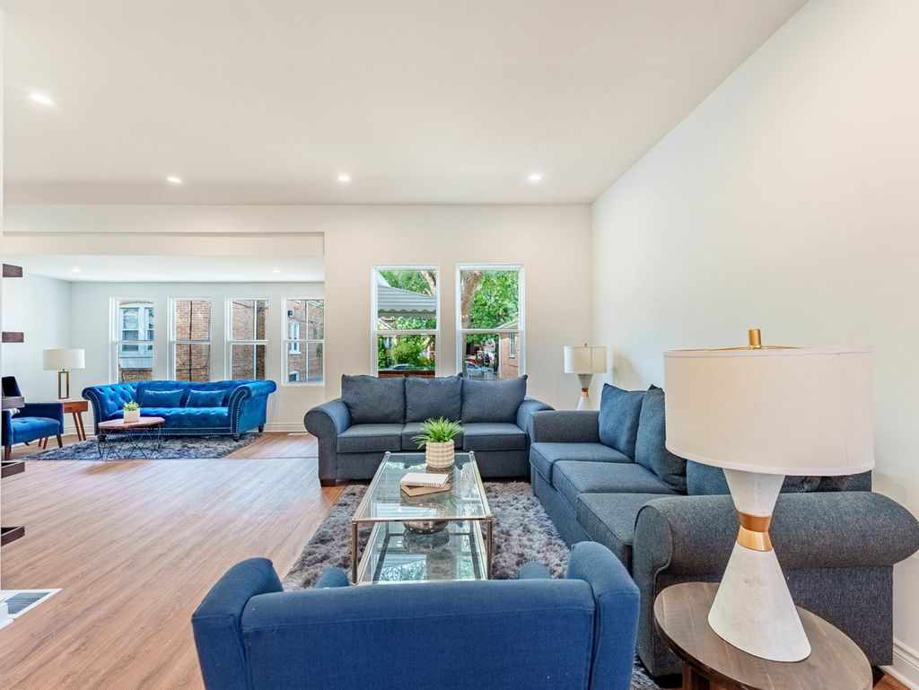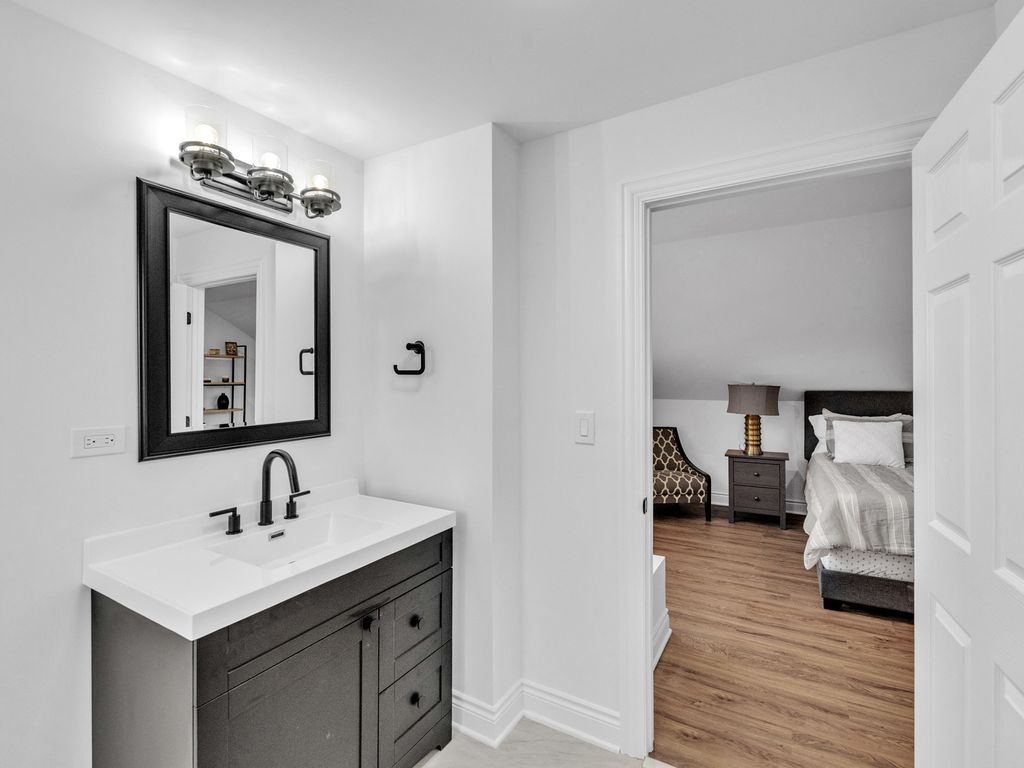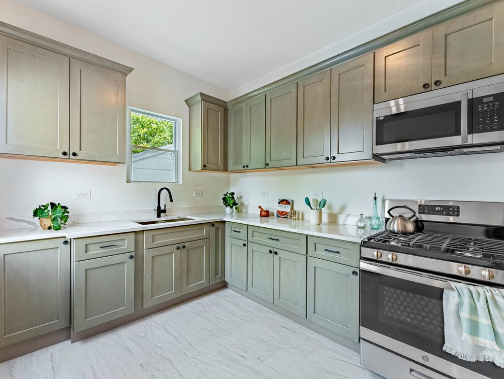 BRAND NEW REHAB - MOVE-IN READY! This beautifully remodeled home offers peace of mind with HVAC, electrical, plumbing, and roof updated in 2025, along with newer windows and luxury vinyl plank flooring throughout. The bright and spacious main level features a large living room ideal for entertaining, a separate formal dining room, and a first-floor bedroom perfect for guests, extended family, or a home office. The stunning kitchen showcases trendy olive-green cabinetry, stainless steel appliances, and modern finishes-perfect for everyday living and hosting. A hardwood staircase adds warmth and character while leading to the second level. Upstairs, you'll find two additional bedrooms and a spacious primary suite complete with a private full bathroom and oversized closet, creating a true retreat. The full basement offers endless potential for future expansion and includes a private entrance, ideal for added living space or an in-law arrangement. Enjoy a spacious front yard that adds charm and curb appeal while providing a welcoming outdoor space to relax and enjoy the neighborhood. An incredible opportunity for first-time homebuyers to own a fully renovated home with room to grow. All showings must be scheduled through ShowingTime. SELLER IS A LICENSED ILLINOIS REAL ESTATE AGENT.