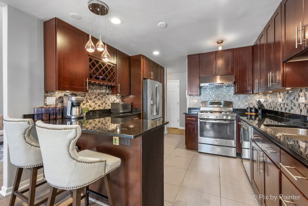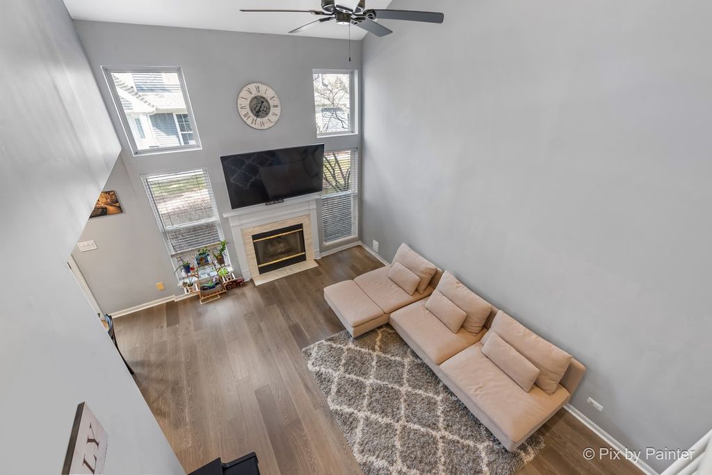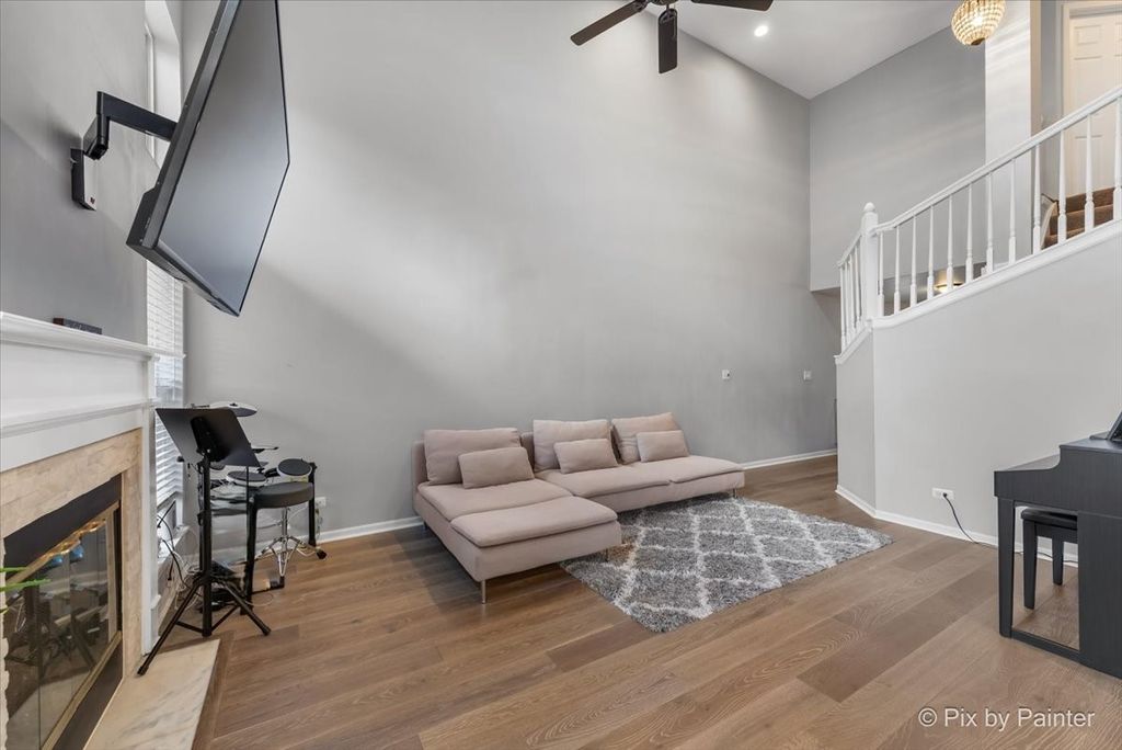 Location, Location, Location! Beautifully updated 2-story townhome located in highly rated School Districts 10 & 108, with easy access to multiple expressways-perfect for commuting to Woodfield Mall, Chicago, and beyond. Step into a grand great room featuring soaring two-story ceilings, ceiling fan, recessed lighting, and a cozy gas fireplace, seamlessly connected to the dining area with sliding doors to a private patio-ideal for relaxing or entertaining ~The updated open kitchen boasts tall espresso cabinets, granite countertops, stylish backsplash, breakfast bar, and newer stainless steel appliances (Hood & dishwasher approx. 2 years, vent hood approx. 3 years) ~The main level also includes first-floor laundry, an updated guest bath, and Newer Engineered Hardwood flooring throughout. ~Upper Level features 3 bedrooms; Master with Walk-in closet & Updated Ensuite, tile Floor, step in shower & Double Vanity ~Updated Guest Bath has New tile Floors ~The home has been painted in today's modern colors and features recessed lighting, white doors, trim, and railings ~1st Floor Laundry Newer Washer/Dryer ~2Car attached garage, Long Driveway for Extra Cars ~Newer Furnace & Humidifier 3yrs ~ Recently Replace Roof & Siding *Seller looking for end of May Closing