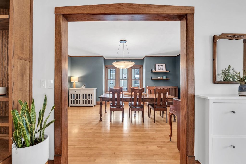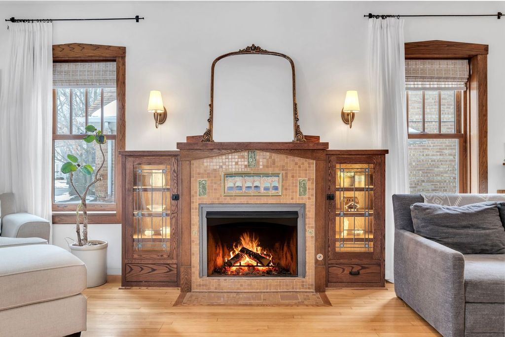 Homes of this caliber rarely come to market, especially one being publicly offered for the first time! Set on a historic block in downtown Mount Prospect's coveted Triangle district, this meticulously maintained 1923 full-brick Craftsman bungalow combines architectural integrity with meaningful modern upgrades and a truly walkable lifestyle. This 4-bedroom, 2-bath residence showcases original and refinished maple hardwood floors, plaster walls, period doors with vintage hardware, and beautifully preserved woodwork throughout. Spacious bedrooms, large closets including a walk-in, custom built-ins, and a lofted library create flexible living spaces that feel both timeless and functional. The main living area is anchored by a gas fireplace with custom cabinetry. A fully rebuilt front porch extends the living experience outdoors and overlooks the historic streetscape. The refreshed kitchen is complemented by a butler pantry, updated appliances, and a reverse osmosis drinking water system. Upstairs, the remodeled bath offers a Bain Ultra therapeutic soaking tub and separate shower, creating a spa-like retreat. Major capital improvements reflect long-term stewardship and confidence: architectural-shingle roof, premium double-pane custom Marvin wood windows, copper gutters, upgraded electrical panel, new insulation, and updated mechanical infrastructure. The approximately 1,400 square foot English walkout basement features brand-new windows, entry and screen door system and provides exceptional storage, recreation, or future finishing potential. Newer chest freezer, washer and dryer. Outdoor living is equally intentional with landscaped open yard areas, patio and garden beds, an electric fence system, and a dedicated hammock retreat. A brick 2+ car garage is complemented by a remodeled 200 square foot art studio or office space. Southwest exposure fills the home with natural light throughout the day. All of this is just steps from the Metra, library, parks, restaurants, farmers markets, and year-round downtown community events. Located within highly regarded District 57 and Prospect High School boundaries. Originally owned by one family and never before listed on the MLS, this is a rare opportunity to acquire a true legacy property in one of Mount Prospect's most desirable neighborhoods.