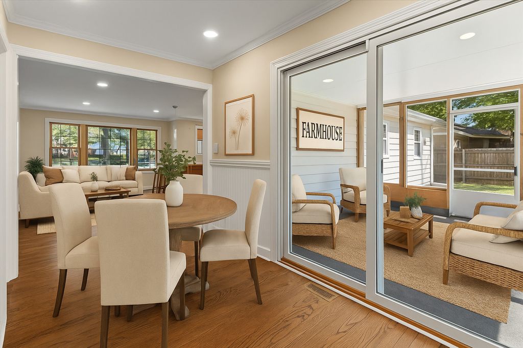 Extensively remodeled ranch with major mechanical updates already completed - including a fully replaced septic system, new roof, and dual HVAC systems (2024) - offering long-term reliability and reduced future maintenance. Located in unincorporated Lockport with low property taxes, this move-in ready home is approximately 5 minutes from I-355 and about 40 minutes from downtown Chicago, providing excellent accessibility for commuters. Designed for true single-level living, the home features a flexible floor plan with up to five bedrooms or adaptable living spaces. Two rooms on the right side of the home can easily be combined to create a spacious primary suite if desired. The modern contemporary kitchen showcases white cabinetry complemented by warm wood tones, white quartz countertops, and new appliances. Abundant natural light fills the interior, creating a bright and welcoming atmosphere throughout. A covered, screened-in sunroom opens to a new back deck, adding valuable space for everyday living and entertaining. The property features a nicely sized front yard framed by mature trees and an oversized fenced backyard suitable for outdoor living, recreation, or gardening. A large shed with built-in shelving and second-story storage provides exceptional functionality. An oversized concrete driveway offers generous off-street parking. Chickens permitted per local guidelines. Situated on a quiet street just minutes from historic downtown Lockport known for its local restaurants, boutiques, and community events with convenient access to parks, shopping, and major transportation corridors. If your looking for a country feel this house is for you.