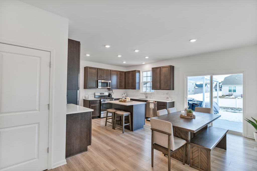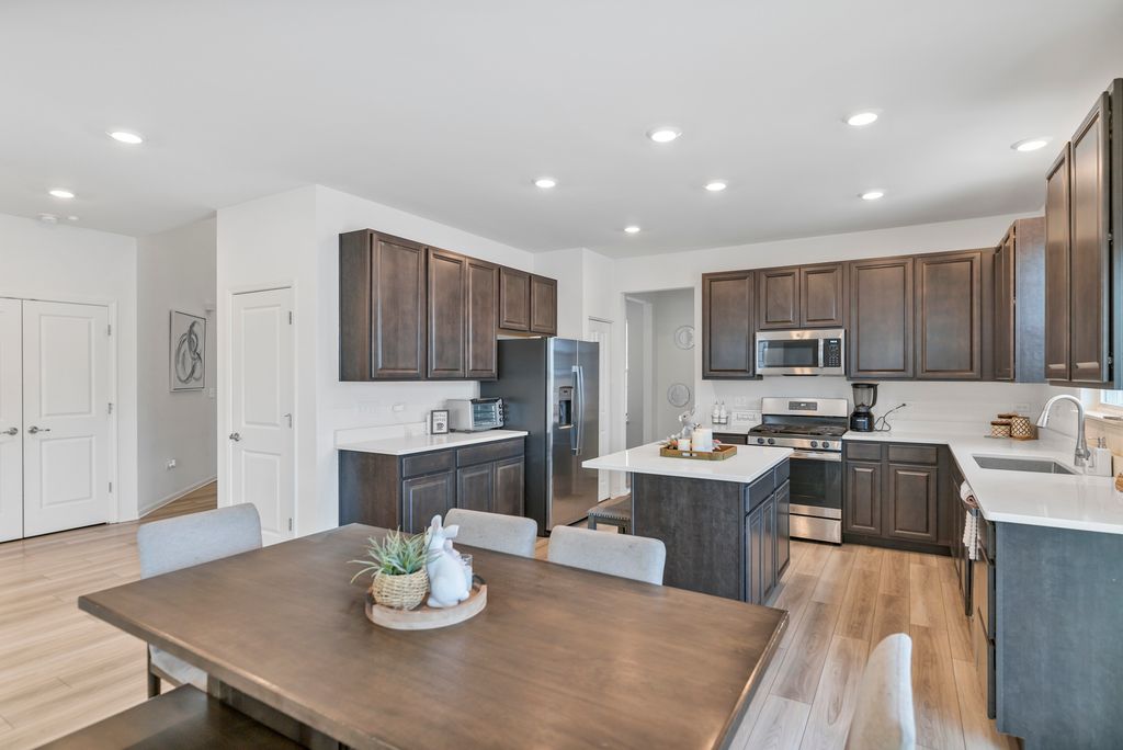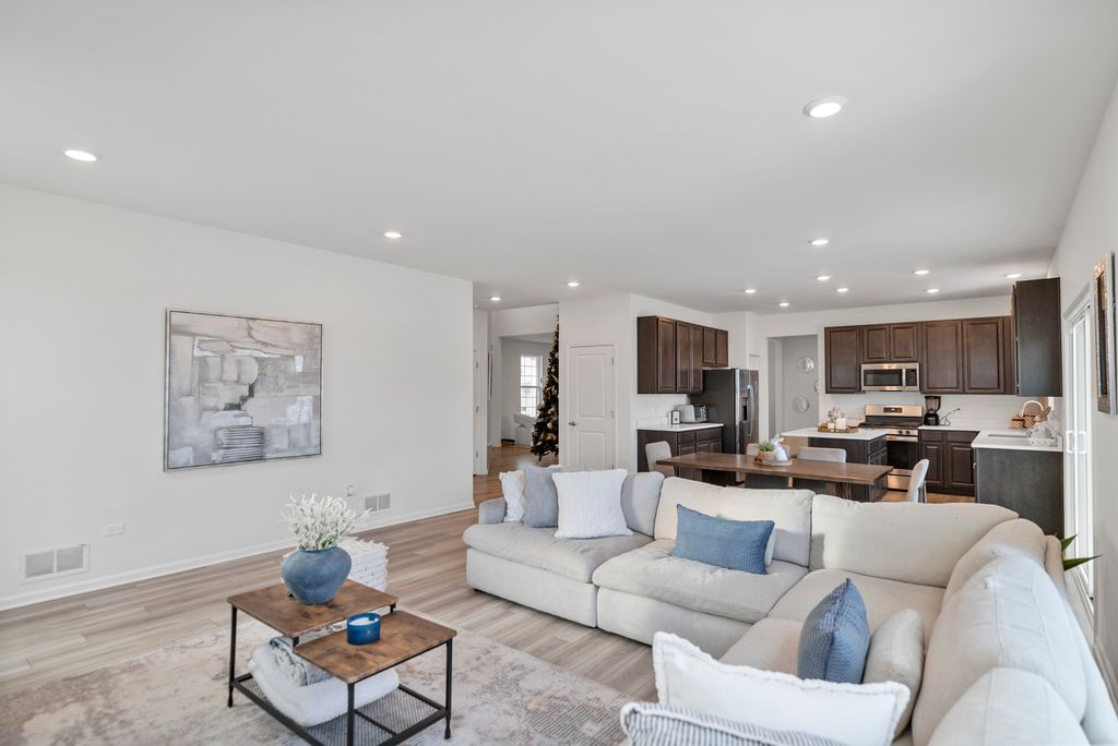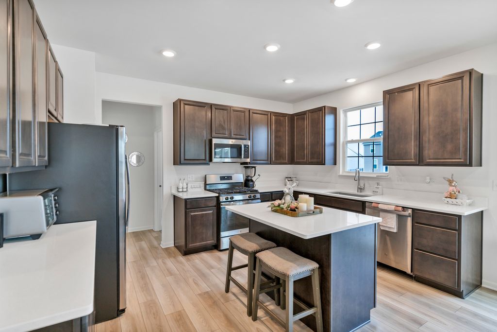 This stunning Galveston C offers over 2600 sq ft of thoughtfully designed living space with 4 bedrooms, 2.5 baths and first floor home office, fireplace, luxury vinyl flooring, full unfinished basement and 3-car garage. As you approach property, you will be captivated by the curb appeal. The attractive exterior, blending stone and siding, set the tone for the elegance inside. This home is perfect for those who appreciate spaciousness and luxuries. The open concept layout connects the main living areas, creating ideal flows for entertaining and everyday living. Luxury vinal flooring and soaring ceiling add sophistication to the space. Adjacent to the upgraded kitchen including quartz counters, upgraded cabinets and SS appliances, walking pantry & breakfast area open to living room. Upstairs, you will be amazed by the four bedrooms with generous closet space. The elegant primary bedroom leads into a primary bath with double sinks and large walking closet. Three secondary upstairs bedrooms are specious; the hall bathroom has a linen closet. The top-rated Hampshire school district! Home is built with smart technology including Ring alarm system and ring video doorbell, Honeywell home smart thermostat, and level invisible smart lock system. The Galveston is the perfect home for making lasting memories with loved ones. Schedule your showing today!
