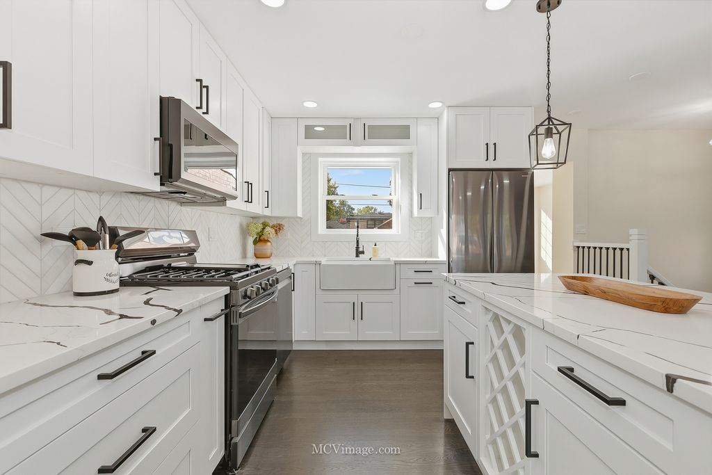 Live effortlessly in this gorgeous remodeled 5-bedroom, 4-bath home in the beautiful neighborhood of Evergreen Park. Plenty of room for multi-generational living, workspace, entertainment and room to spare. The main floor with hardwood flooring throughout features a sunny living room at the heart of the home with a cozy fireplace and open concept kitchen and dining. Black stainless appliances are a modern touch. Two bedrooms with a full main level bath and another additional flex space for work or play. The second story primary retreat with walk in closet and impressive ensuite bath, combines elegance and functionality. There are two additional bedrooms on this second floor with full bathroom and dual sinks. The finished basement is an expansive space left open to your imagination. A large cozy family room fit for a holiday party to remember or an exercise room with enough gym equipment to compete with that local membership. Too many options to list. In addition, a laundry and mechanical room, two storage spaces and yet another full bathroom that deserves to be seen with elegant finishes and plenty of space. Yet there's more. A tucked away area with plumbing already in place for a future wet bar, shampoo chair or a kitchenette. Feel at ease knowing the village has already completed the water service line replacement project. This home really has it all. We'd love for you to see it!