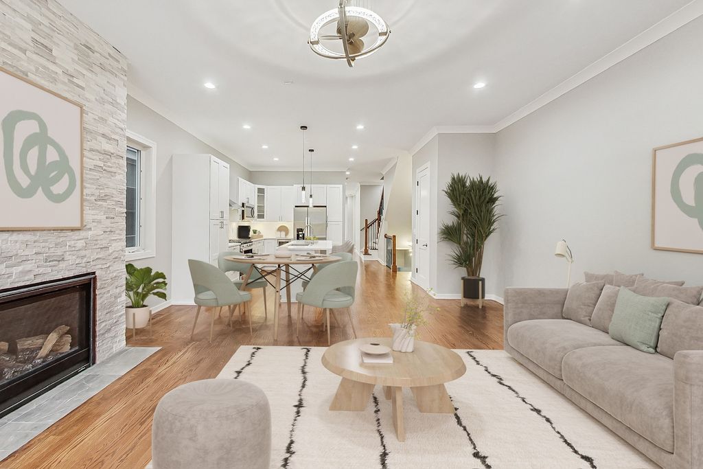 BEAUTIFUL FURNISHED MODEL NOW OPEN! BRAND NEW CONSTRUCTION...IN POPULAR WOODLAWN NEIGHBORHOOD! READY FOR MOVE-IN! Contemporary 5BR/3.5BA features modern design and stunning finishes. Including; spacious kitchen with white shaker style cabinetry, stainless steel appliances w/beverage cooler, breakfast bar, & STUNNING BRAND NEW CONSTRUCTION IN THE HIGHLY DESIRABLE WOODLAWN NEIGHBORHOOD! MOVE-IN READY! This contemporary 5-bedroom, 3.5-bath home boasts a sleek design with exquisite finishes. The spacious kitchen features white shaker-style cabinets, stainless steel appliances with a beverage cooler, a breakfast bar, and stone countertops. Enjoy large picture windows, 9-foot ceilings, hardwood floors on the main and upper levels, a gas fireplace, designer lighting, ceiling fans, and a stylish mudroom with built-in shelving. The main bedroom suite offers a private bath with double sinks, a separate soaking tub and shower, and 2 custom closet systems, Secondary bedrooms share a convenient Jack & Jill bath. The upper level also includes a laundry room with custom shelving, washer/dryer included. The fully finished basement has luxury vinyl wood flooring, 2 additional bedrooms, a bathroom, and an entertainment room. Enjoy a 2-car garage and a spacious backyard deck ideal for entertaining. **PRIME LOCATION!** Just minutes from public transportation, the lake, LSD, the Loop, Hyde Park, and the University of Chicago campus.