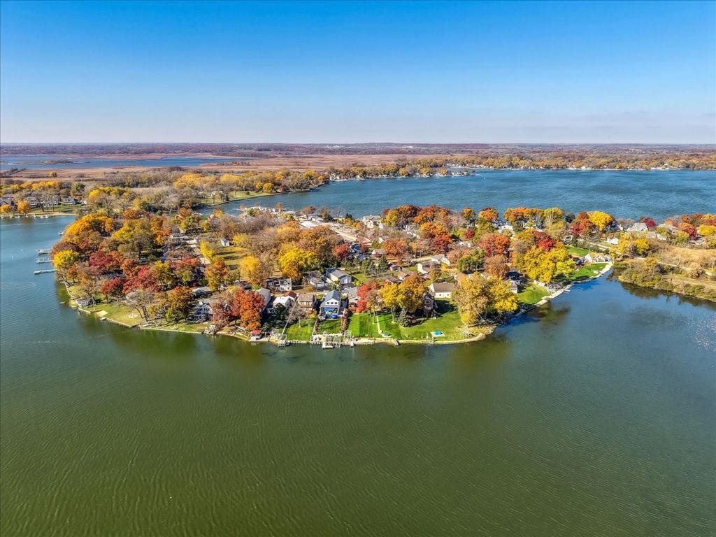 Showings start Thursday, Feb 19, 10am. Amazing Waterfront home on 80+ acre Bluff Lake...Nestled just above Petite Lake and south of Lake Marie. 50-foot beach with pier. Stunning secluded setting! Adorable 3 bedroom, 3 bath with huge 4+ car garage and enormous pole barn 3-6 boats on second lot across street. Wow! Panoramic views from wide open Living & Dining Area with beautiful stone fireplace. Updated Kitchen and Two Baths 2014. Newer cabinetry, stainless appliances & granite counters. Large Primary Suite with impressive views. Private Bath with dual sink vanity & walkin closet. New Siding & Windows 2014 house, garage & barn. New Roof all three structures 2020. Deep backyard. Large Deck. Pergola with Fan. Basement. Sealed Paver Driveway. Garage 36x30. Pole Barn 72x32. Loads of storage, work shop, loft, huge ceiling, firepit, raised veggie gardens, fence & guest parking. Great storage/rental potential. Shore station not included. Search: Lakefront. Fox Lake River. Chain O'Lakes. Dock. Shoreline. Interior Photos after Friday.