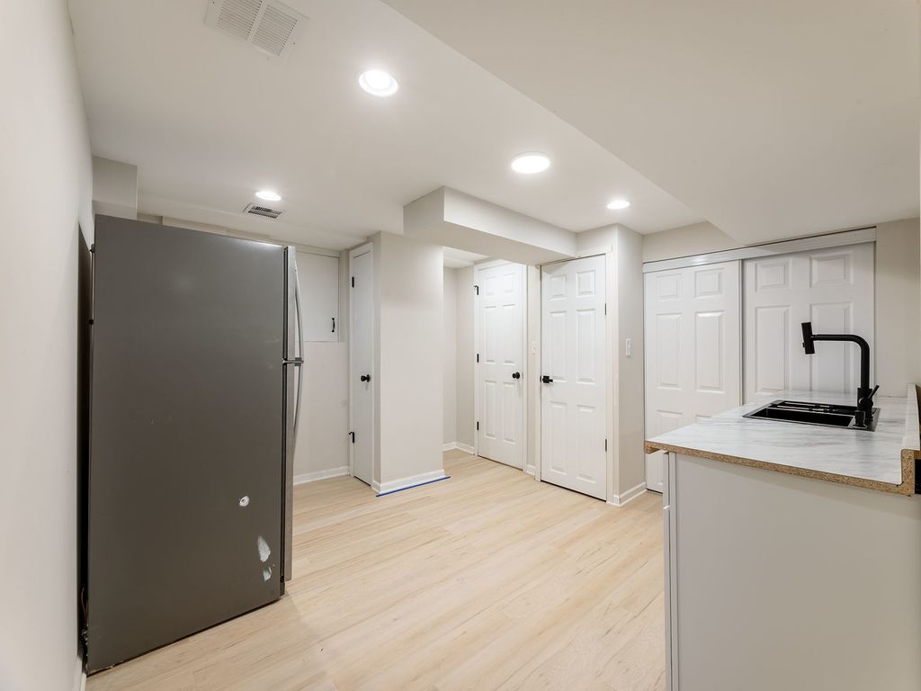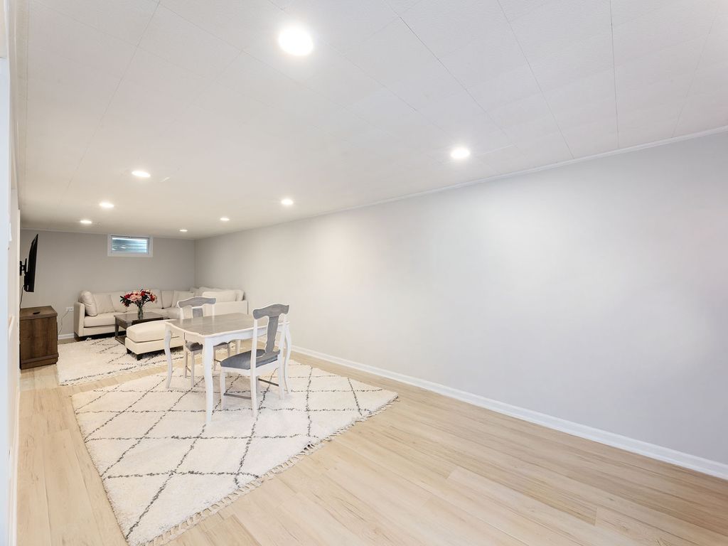 This sprawling ranch looks small from the outside but it is very spacious on the inside! It features an intelligently designed floor plan with 4 bedrooms on the main floor, a fifth bedroom in the basement and 2.5 bathrooms! Walk into a dining room, kitchen and family room, and notice how it feels upon your entrance: open, airy and bright! Crisp, natural sunlight beams into this home from the family room windows and skylights. Just watch: as the sun lights up your home, and your heart! The dining room area comfortably seats eight people and it opens up to a masterfully designed kitchen featuring white shaker style cabinets along with a Sub-Zero refrigerator, a Wolf microwave, a Forno stove and a Forno hood, and a tastefully selected quartz countertop! Hang out with your family and friends around the kitchen peninsula and the kitchen island and: eat, drink, chat and laugh. Then, be wowed: by the family room! It is accentuated with a large, vaulted ceiling featuring skylights, recessed lighting and so many windows. It is like a little piece of heaven. This family room has enough space for a large sectional, an ottoman and an entertainment area. There is also a sliding glass door that leads to a beautifully bricked paved patio and a large yard! It is a perfect space for entertaining and relaxing. More so, there are four bedrooms on the first floor. Three of the bedrooms are on the north side of the home, or just to the right of the front entrance. These three bedrooms share a full bathroom as well. The fourth bedroom is a true primary bedroom and it is located at the opposite end of this home, which adds privacy to this space; it features a full, primary master bathroom with a jacuzzi, a pretty double vanity and tastefully curated wallpaper! You will love it! But, wait. There is more! Head down to a full, finished basement featuring luxury vinyl flooring, a small, quasi-kitchen area, a bathroom, a stackable washer-and-dryer and an additional bonus bedroom, which can also be used as an office, a recreational room, an exercise room or a playroom for kids! This home also features window well drains, a sump pump, a battery back-up system and a huge 4-foot crawl space in the basement, which is just underneath the family room! This home is within walking distance to the park, Metra, schools, shopping and restaurants! Easy to show. A 10!