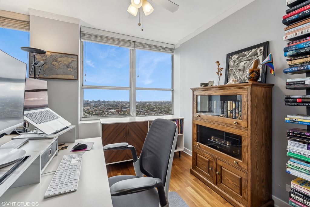 Lively in Lakeview! Spacious penthouse with breathtaking views of Lake Michigan, the iconic Chicago skyline and Wrigley Field. Bask in the sun all day with east, south and west exposure as natural light pours in from the oversized windows in every room. The open kitchen w breakfast bar is adorned with hardwood floors, cherry cabinets, granite countertops & stainless steel Samsung appliances.There is even room for your dining table! The bathroom is outfitted in earth toned granite with ceramic tile walls & floors. Abundant closets throughout, including a small walk-in, in the bedroom. Park Place Towers is a dog-friendly bldg and offers many amenities including: 24 hour doorstaff, on-site management office, on-site engineer, fitness center, outdoor pool w/ cabanas & grills & basketball court, dog run, party room, package room, restaurant, theatre, Park Place Foods market, dry cleaning, drop-off laundry service, large laundromat. Unparalleled access to DuSable Lake Shore drive, montrose beach & boat harbor, a myriad of restaurant, shops, and entertainment options in uptown, boystown and wrigleyville. cta bus at irving park & pine grove and cta redline at irving park and sheridan. Deeded garage space (self-park, not valet) is $25k.
