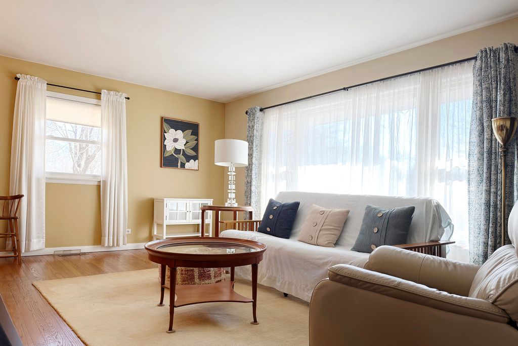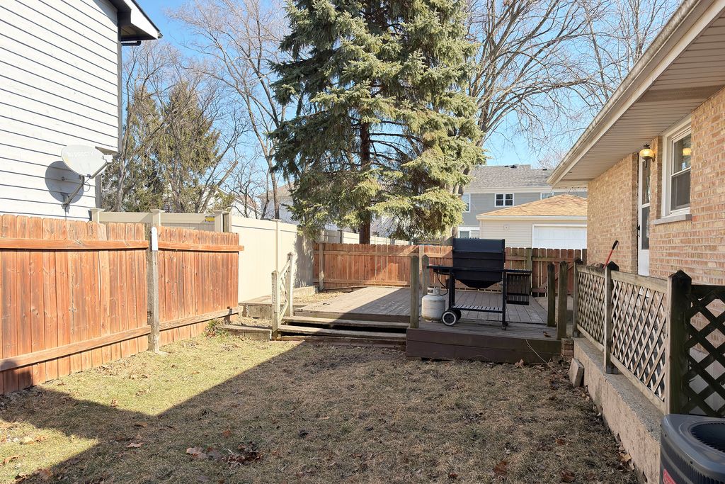 Solid Brick Ranch on very private corner lot near school, playground, shopping, entertainment spots, transportation and all that newer Wheeling has to offer. Hardwood floors throughout. Separate Dining room. First floor laundry. Walk in shower. Newer A/C in 2019. New Roof and Siding on 2 1/2 car garage. Highly sought after Partially finished FULL SIZE WALKOUT BASEMENT Rarely found in this subdivision. Circular drive in front with deck and partially fenced private back yard. Lovingly cared for home by long time owner.