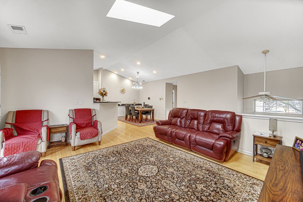 This one is a DEAL! (The last 2 of this model sold $565,000 & $575,000!!) Meticulously maintained townhome located steps from highly rated STEVENSON HIGH SCHOOL! Updated kitchen with granite countertops, stainless steel appliances, granite countertops and backsplash, and 42" white cabinets! Hardwood floors throughout main living area! Cathedral ceilings! Recessed lighting throughout all living areas! Windows featuring plantation shutters! Spacious primary bedroom with en suite bathroom featuring granite dual vanity! Finished basement adds additional living space! Newer A/C and furnace ('20), water heater ('23), and dryer ('24)! Fresh paint! Walk to Stevenson High School and Prairie View Metra station! Don't miss out! Lincolnshire D103 elementary schools and D125 Stevenson High School!