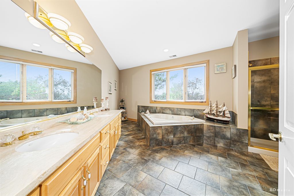 This one-of-a-kind, customized home is located in the sought after Foxmoor Estates of Lemont! The pictures say it all! This magnificent ranch has been updated for full wheelchair access throughout the home with an elevator, outside wrap around ramp access to the lower level. Located on a 2-acre corner lot, this 9,000+ square foot home offers four bedrooms, five full baths, a massive loft area. The 54' x 45' Great Room truly is great, with the 16' high ceiling and 13' wide, stone fireplace that is a major focal point. The Kitchen boasts of all granite counters, and brand-new stainless-steel appliance. The Master Bedroom offers a ramp access for wheelchair or walker need. The Master Bath is done in granite with an under-mount heated whirlpool; a roll-in seated shower and double vanities. There is radiant heat in the floors, as well as heating the lower level and the six-car garage. The lower level features a professional grade dance floor studio, an amazing gaming area with full wet bar, and a customized mural of sports figures that has to be seen to appreciate. One of the "lockers" is even signed by former White Sox player, Ron Kittle. Enjoy the game or Family Movie Night on the 130" projection TV! Storage is not an issue in this home with an extra-large crawlspace area as well. The grounds of this home feature a lovely water feature of a small waterfall, that feeds the wraparound brook, surrounding the home. But we have yet to discuss the true feature that stands out with this home, the enclosed pool house. The pool house contains a customized heated pool, with an electric guided cover, a dedicated swimming lane for exercise, a chair lift for handicap access to the pool, a self-cleaning system for maintenance ease, a professional grade waterslide, and not to mention the tiki bar, and custom lighting. The sides of the pool house are able to open for summer use and keep closed for the winter. The list continues of features that even the pictures cannot justify. You have to see this home in person to understand!