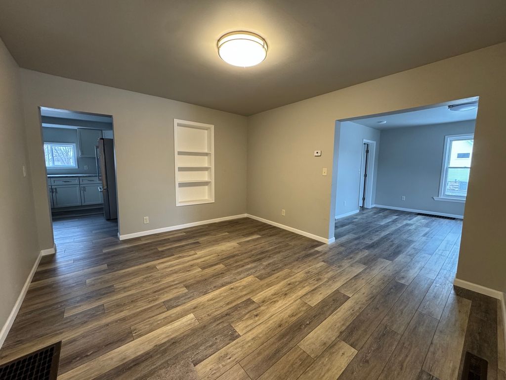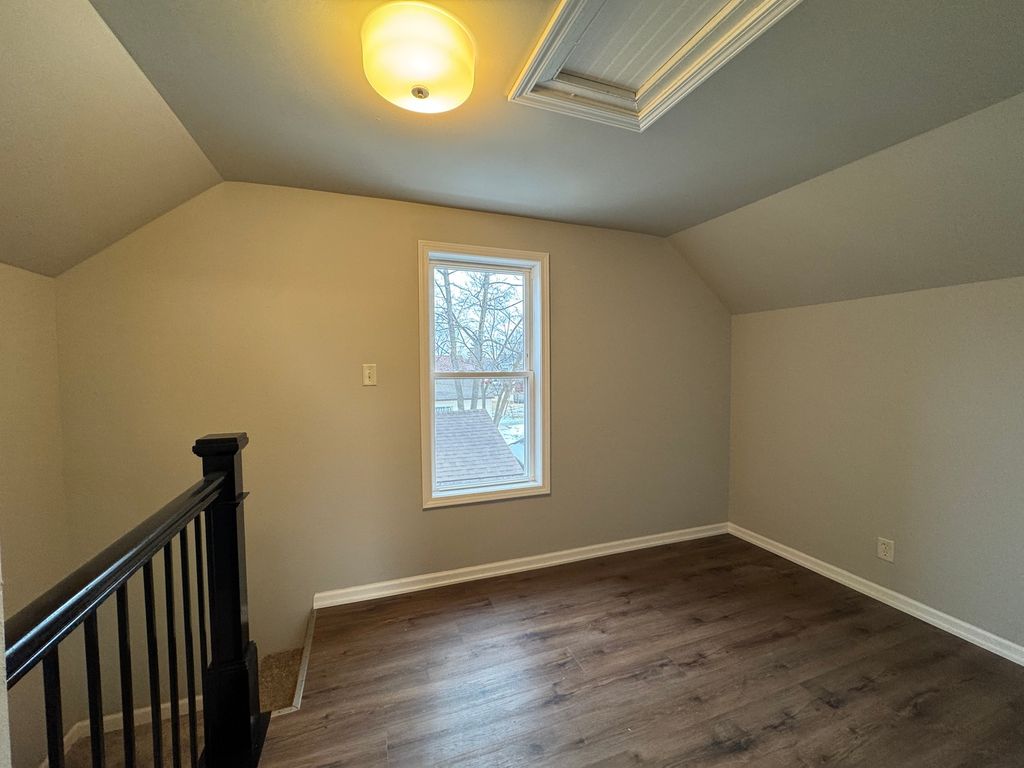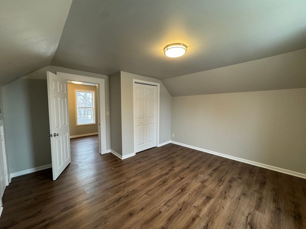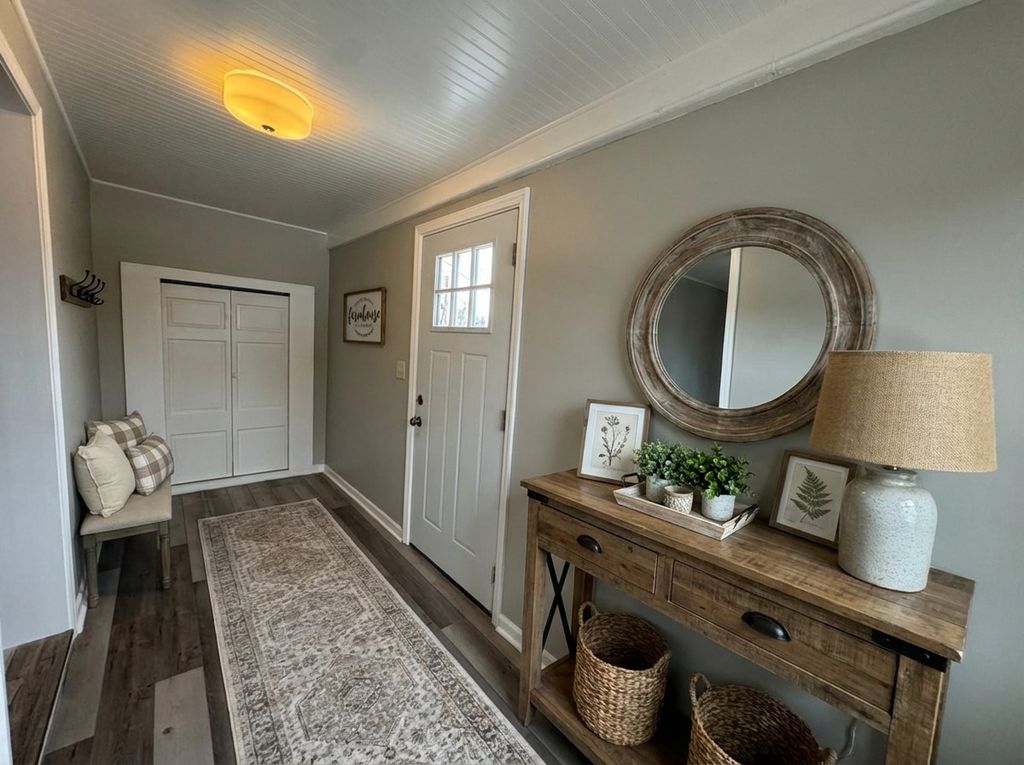 Charming and truly move-in ready! This inviting home offers brand-new laminate flooring throughout and a versatile layout. The first floor features a convenient bedroom, while the spacious second-floor primary suite includes an additional tandem room-perfect for a home office, nursery, or cozy sitting area. The beautifully remodeled kitchen is a standout with granite countertops, stainless steel appliances, a walk-in pantry, and a new washer and dryer to simplify everyday living. Additional highlights include an enclosed front porch with closet space, an attached one-car garage, and a clean full unfinished basement for added storage. A fantastic opportunity in a convenient location-don't miss this one!