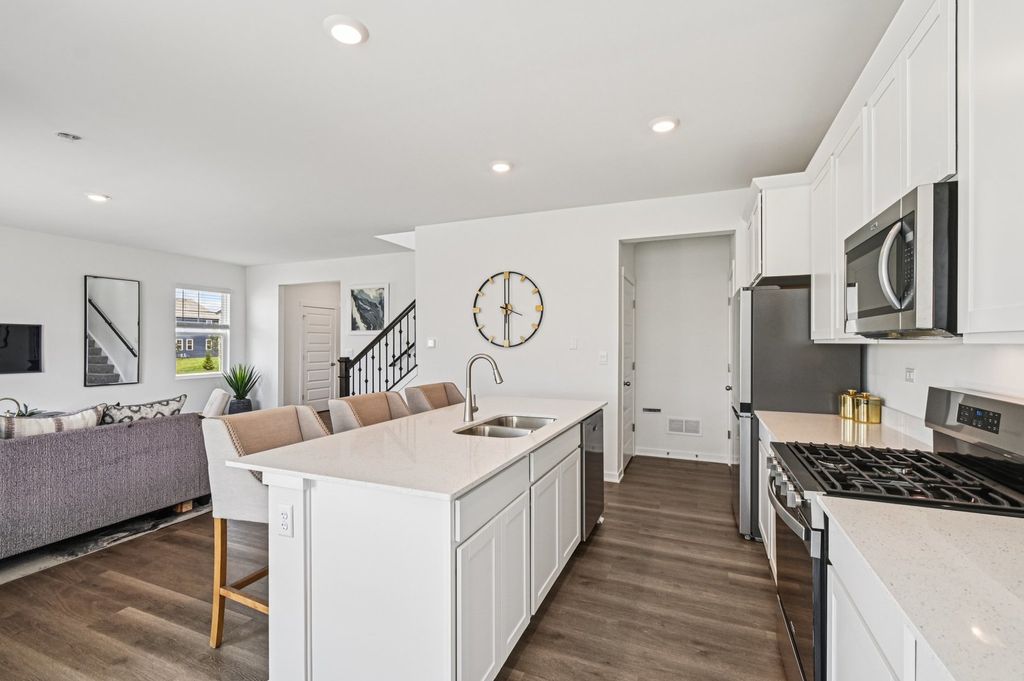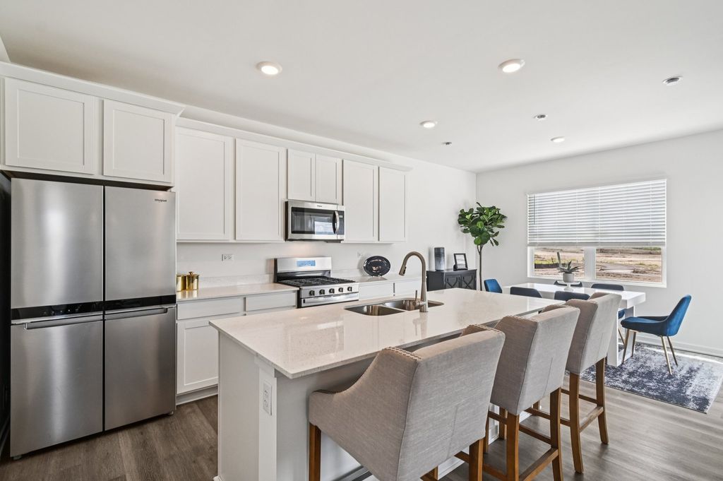Welcome to 2417 Semillon St. the Sloan floorplan is located at the beautiful amenity filled Sonoma Trails Community in Oswego, IL. Home will be available for late SUMMER move-in. This scenic homesite will include a fully sodded yard and landscaping package. The Sloan plan offers over 1,900 square feet of living space with 4 bedrooms and 2.5 baths. Enjoy this open concept home with natural light throughout your main level. Coming through your front door you'll find your powder room and coat closet in your foyer. The great room, dining room, and kitchen flow effortlessly together, making it your home the perfect entertainment space. Your kitchen features 42" designer cabinetry with quartz countertops, and a pantry. Walking up the beautiful rod iron staircase you will find your private oasis with your primary bedroom on its own side of the top floor complete with an en suite bathroom complete with a raised dual quartz vanity and walk in closet, and linen closet. Enjoy the convenience of a top floor walk in laundry room and all secondary bedrooms upstairs with a full second bathroom with a dual vanity and linen closet. Sonoma Trails is located in Oswego, this charming, historic town evokes a family atmosphere with countless options for shopping, dining and entertainment. All Chicago homes include our America's Smart Home Technology. Exterior/interior photos of similar home, actual home as built may vary.