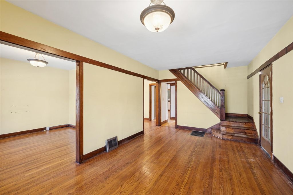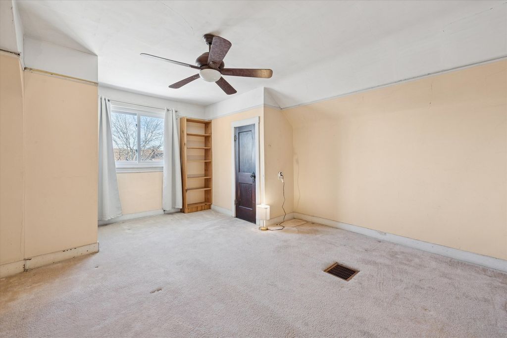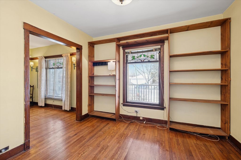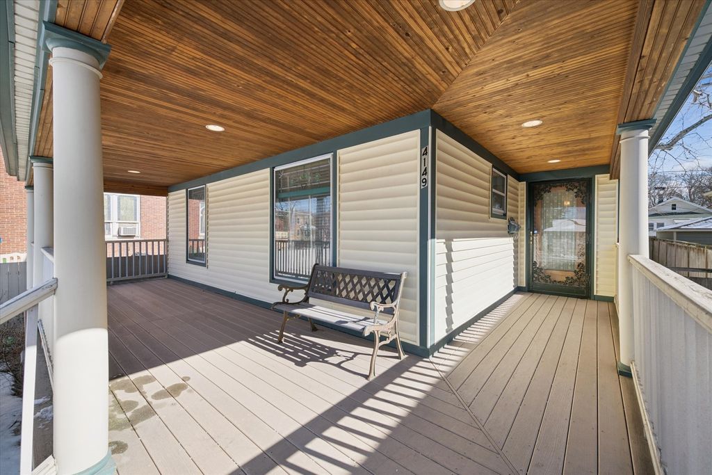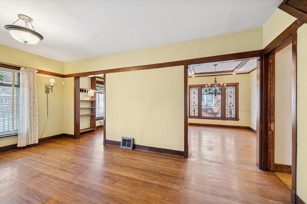 Prime value-add opportunity in sought-after Portage Park! This solid, well designed, 1912 American Four Square sits on an oversized lot and is being sold strictly "as-is" as an estate sale. Starting with the unusual large wrap around porch with solid pillars, explore the vintage charm and amazing space. Wonderful stained-glass windows in the living room, drawing room/library, and the dining room which has the original hutch and coffered ceiling. Large kitchen and pantry, one bedroom and a full bath. There are an enclosed, unheated, original sunporch and a deck from which you can enjoy the very large yard. Original staircase to the second floor which has 2 bedrooms and an ensuite bath with handheld shower. Convert this level to your new floorplan and choose to restore the woodwork, doorknobs and hardware. Updated with GFA and central air, this home was happily occupied for the last 35 years. Basement is unfinished, with laundry and mechanicals. Newer water main and meter, some copper supply lines. Two car garage.
